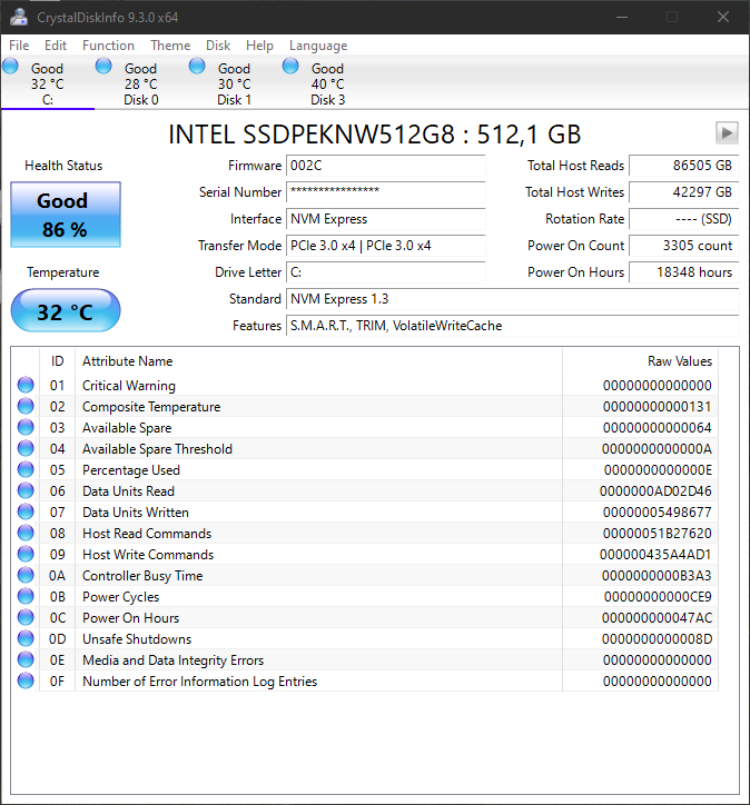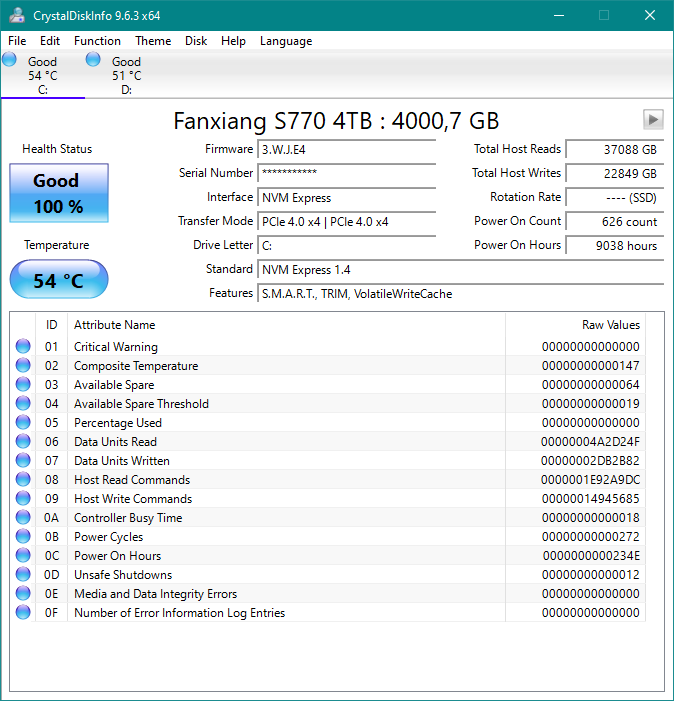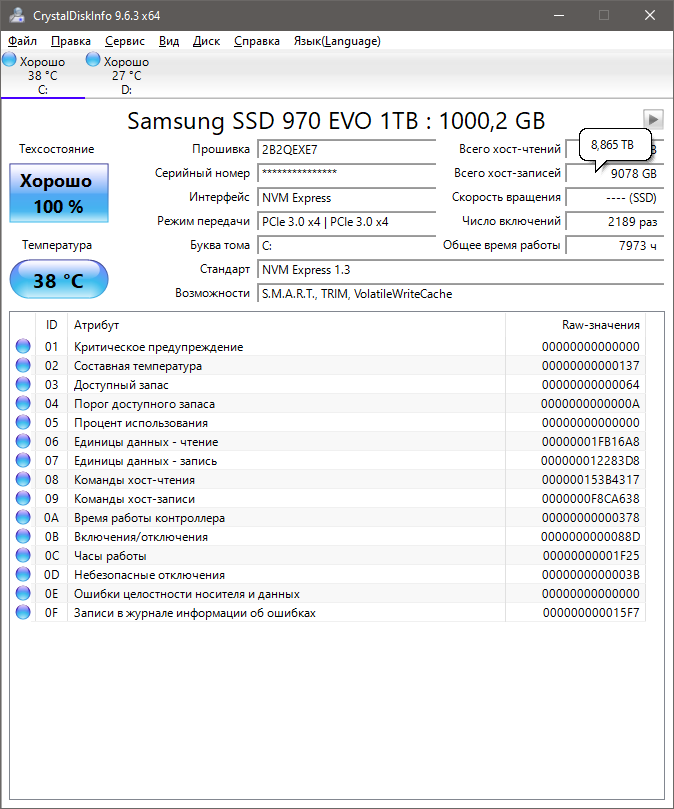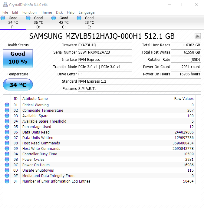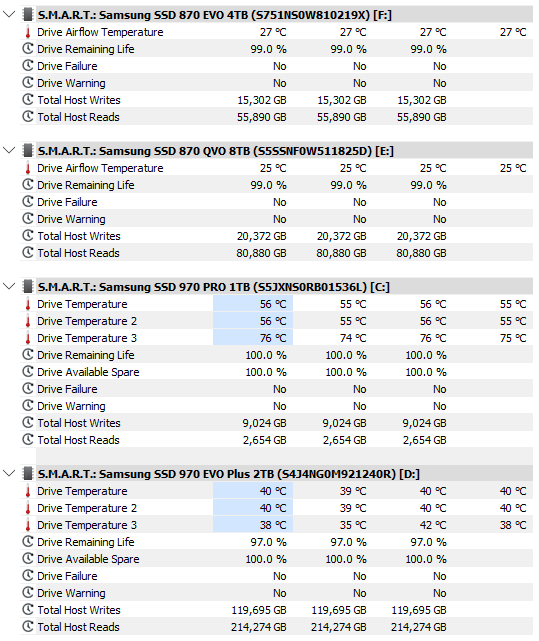 • Samsung PM9A1 (PCI-E 4.0, Samsung TLC, DRAM, контроллер Elpis; OEM вариант 980 Pro, Migration tool и Magician его не поддерживают)