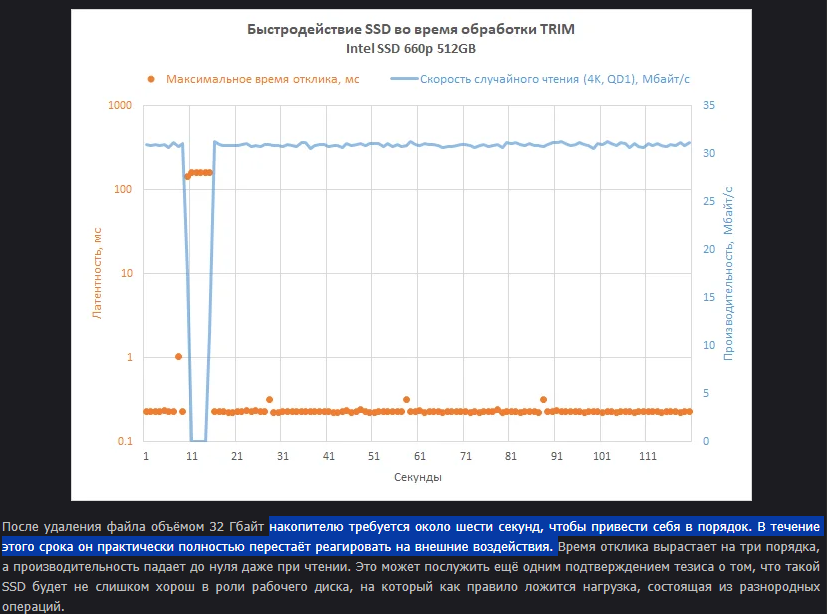3) Самая быстрая и надёжная память - SLC (уже не выпускается), 3D Xpoint (снята с производства) и MLC. Затем идёт TLC. QLC характеризуется низкой скоростью прямой записи в NAND и неважной работой с мелкими блоками