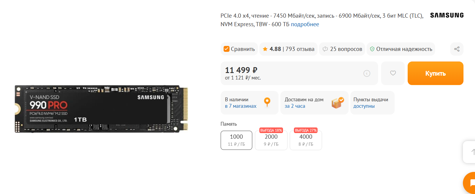 Почисти авиту вилкой, найди там сасунг за 5-7к за 1 тб. Б/у сасунг если работает, то ресурса там ещё на двадцать-тридцать лет.