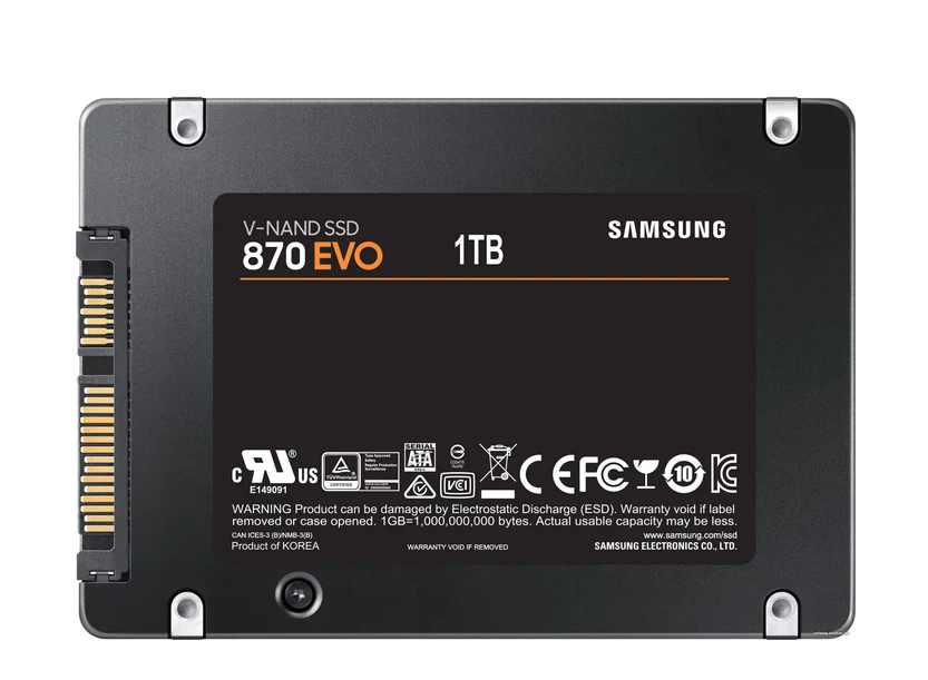 • Samsung 870 EVO (Samsung TLC, DRAM, контроллер MKX; избегать выпуска 2021 года и I квартала 2022 года из-за возможной деградации NAND)