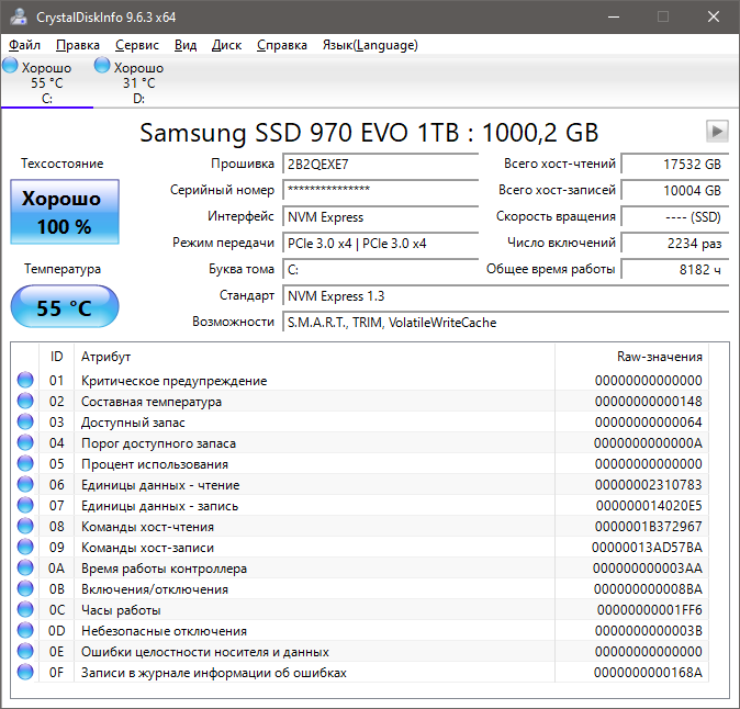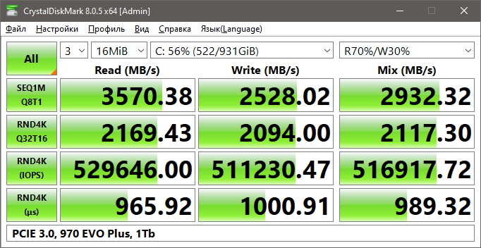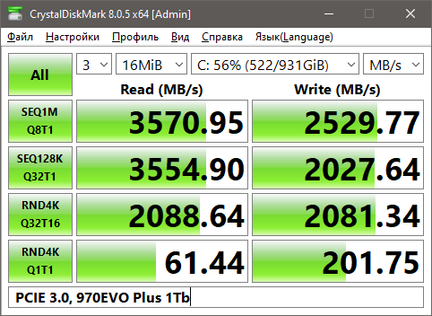 • Samsung 970 Evo Plus (Samsung TLC 96L, DRAM, крнтроллер Elpis)