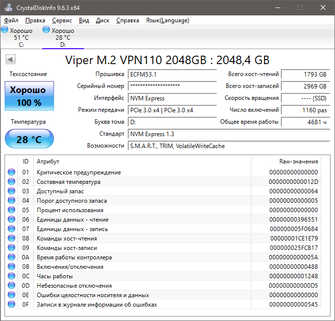 • Patriot Viper VP4300 (PCI-E 4.0, Micron TLC 96L, DRAM, контроллер IG5236)