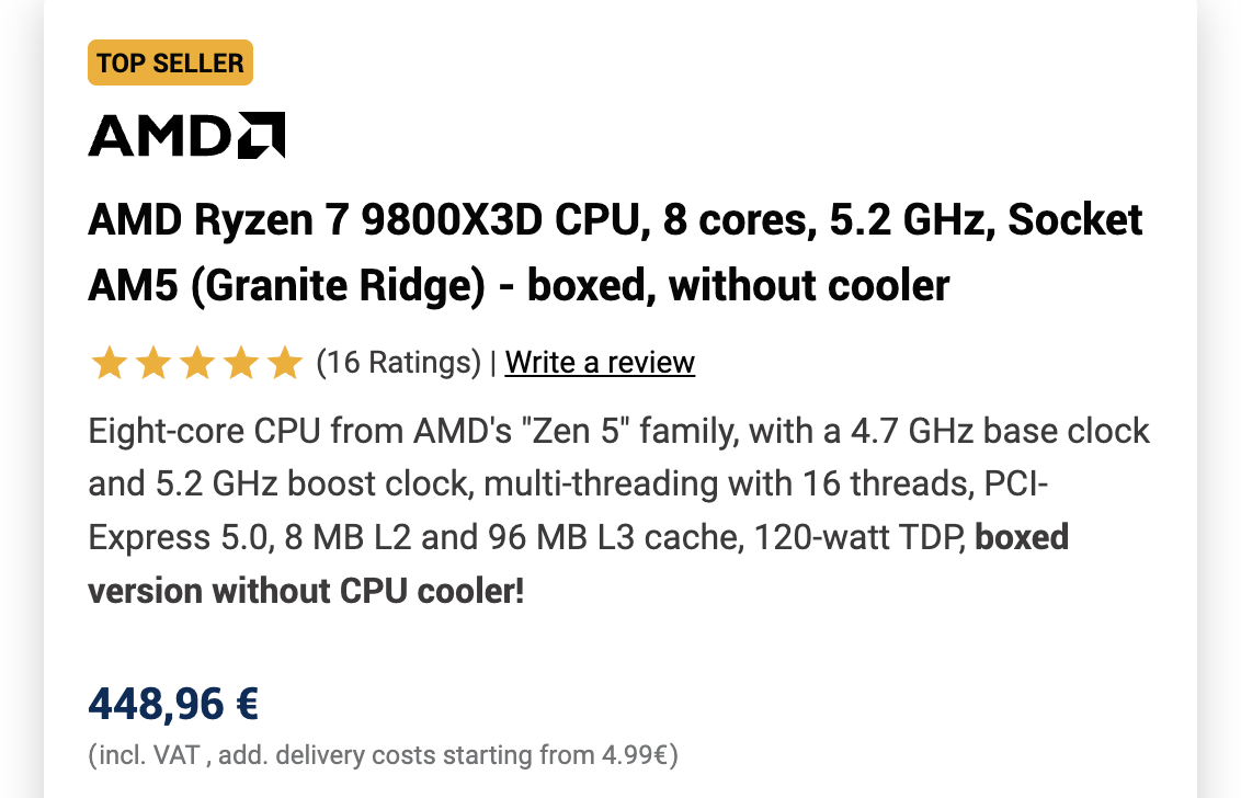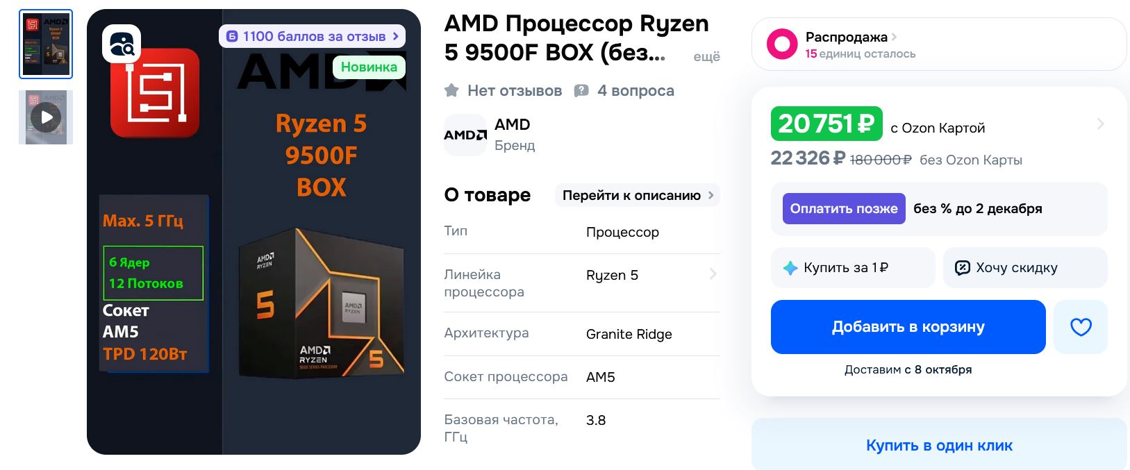 Бюджетный процессор Ryzen 5 9500F без встроенной графики позиционируется как аналог «народного» Ryzen 7500F.