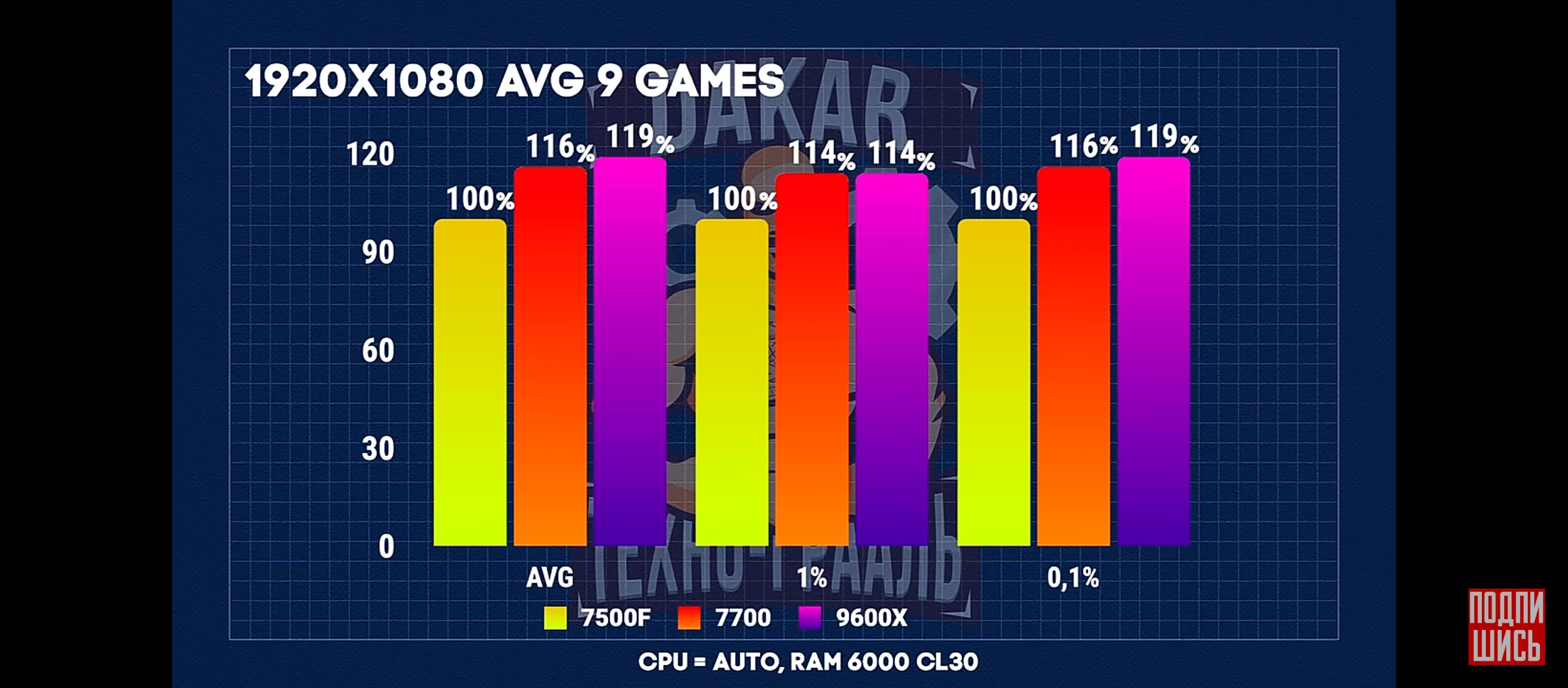 >>7524170 >9600х Добавлю. Раз ты собирался брать Таф, то на сэкономленные вполне можешь купить себе 7800x3d, а не 9600х. Это лучший процессор щас по цена/фпс. Разница с 9800x3d, в среднем, примерно 10%.
