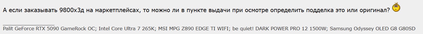 Может даже сходить к полукиберкотлете Аимлулу который недавно с 7800х3д на 9800х3д ради шестой батрухи переехал. Тот ещё и на ебало нассыт за упоминание синего кала.