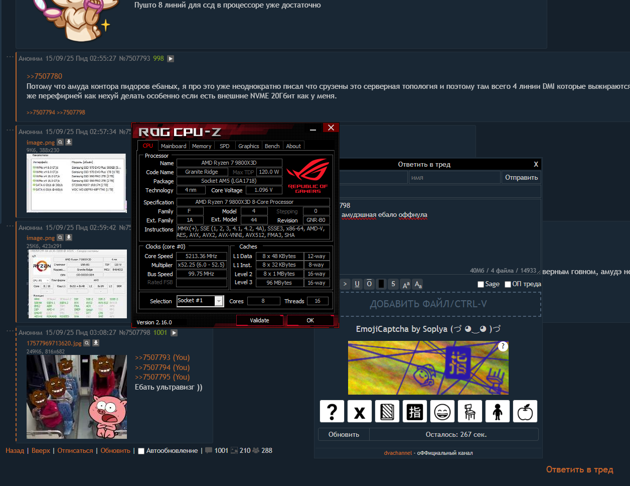 Все хвалят 9800x3d, его и собираюсь брать, но я не могу определиться с материнской платой. Давно видел мнение, что комп на AMD что-то типа тни, у которой пмс 365 дней в году, и когда я полез разбираться в материнках понял насколько это правда. Я готов взять x870(e), но даже там какой-то пиздец постоянный, типа ссдшников делящих линии то с pcie, то с usb4 портами. ASRock горят, у гигабайт pcie урезается, если второй ссд. Пока, как мне видится, самый лучший вариант это MSI MAG X870E Tomahawk, там второй ссд урезается если что-то воткнуть в usb4. И все равно я читаю про проблемы со стартом системы за 2 минуты.