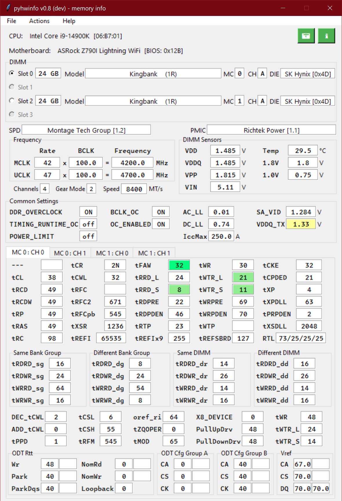 >>7571747 Честно не знаю можно ли вообще разогнать 16гбитные бинарные М даи хайникс дуалранки Выставлял 6600мгц, в тм5 прошел дефолтный тест и экстрим от анты777, затем кахру и осст, ошибок не было, но как только вошел в игру сразу же бсод получил с ошибкой MEMORY MANAGMENT