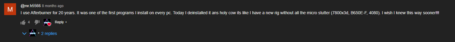 >>7560661 >пиздеть про лаги и дипы вызванные афтербернером >>7560668 подожди - тебе даже автор написал что This is NOT exclusive to MSI Afterburner an issue with the NVAPI
