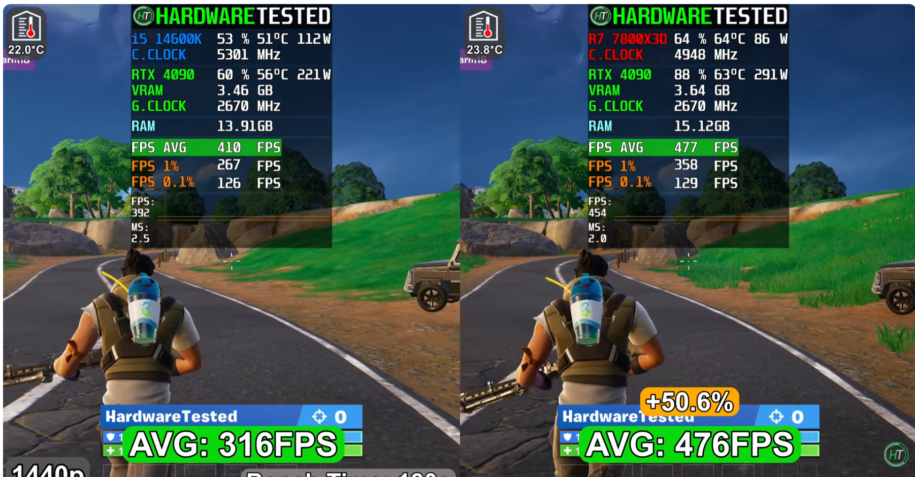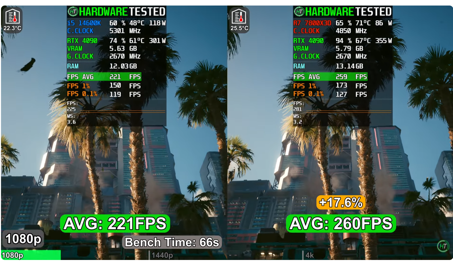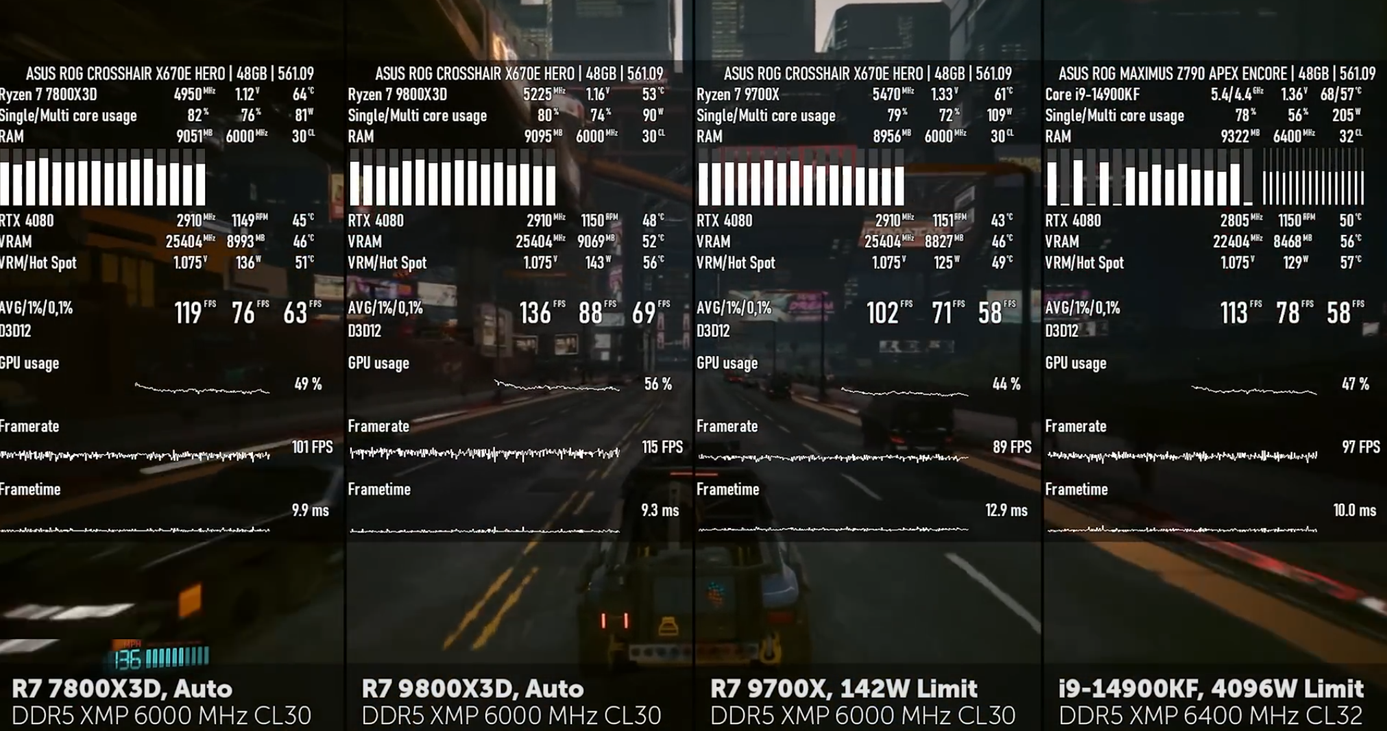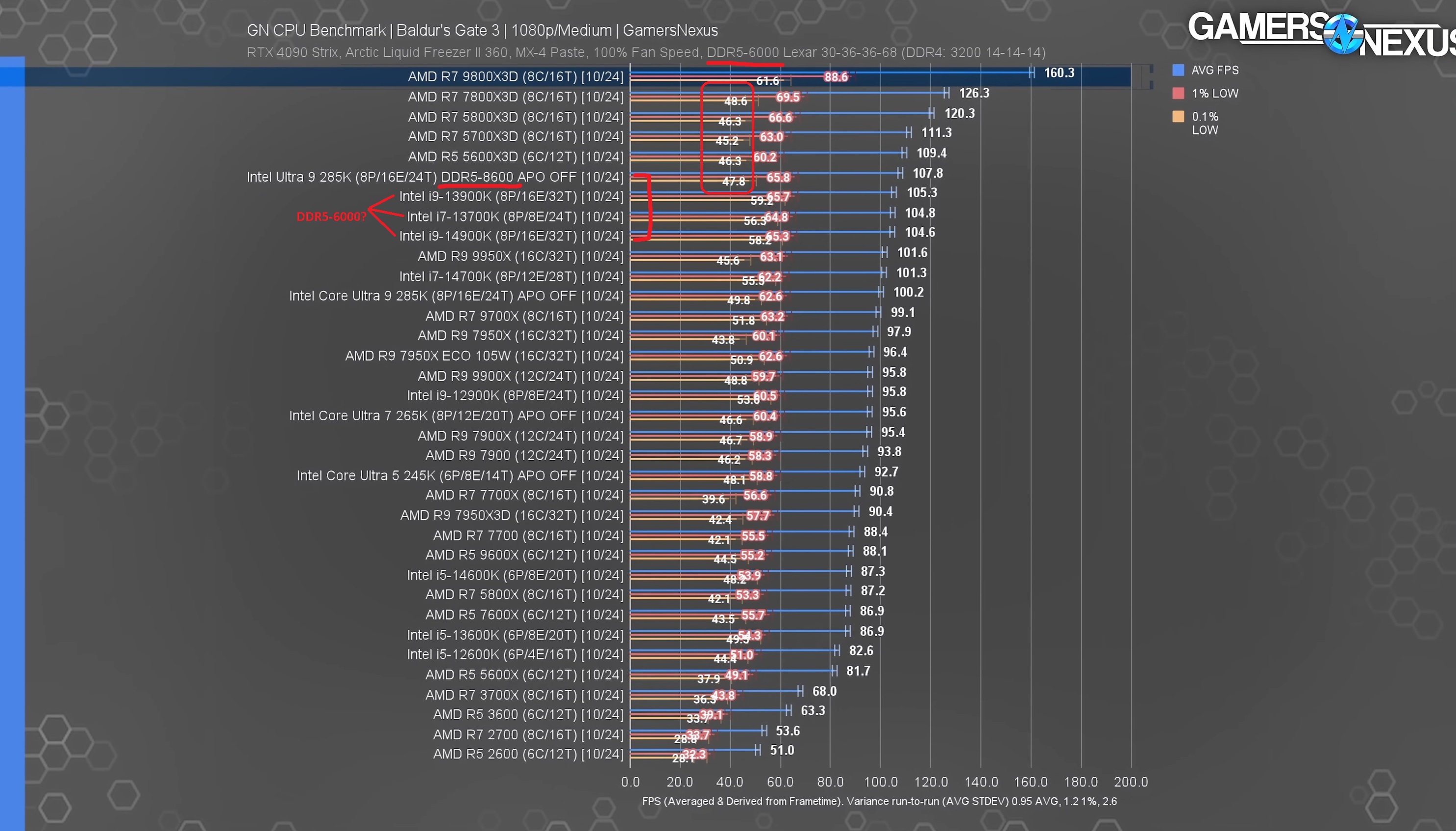 >>7571826 И в этом тесте они проверяли тупо профит от разгона памяти. А ведь 14600к можно по ядрам разогнать на какой-нибудь самой дешманской з-плате (все равно выйдет заметно дешевле, чем калплект с 7800х3д), и тогда 14600 в некоторых играх неиронично будет 3д-кал обгонять, в том же киберпанке. Вот и думайте.