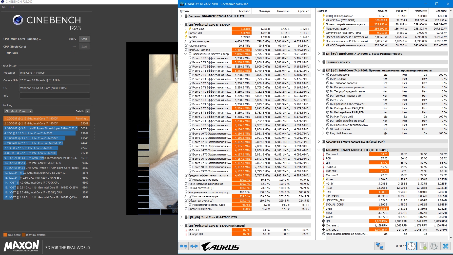 >>7562109 > Норм кремний? Самый обычный. Лучше смотри температуры в играх на фростбайте с упором в процессор, это единственное что имеет значение. Остальное абстрактная хуйня безо всякой ценности. Чёто у меня сомнения что твоя 240 вода нормально охлаждает на 5.7ггц. Я выбивал на 5.2ггц в районе 39к со всеми включёнными ядрами, т.е. у тебя в троттлинг уходит.