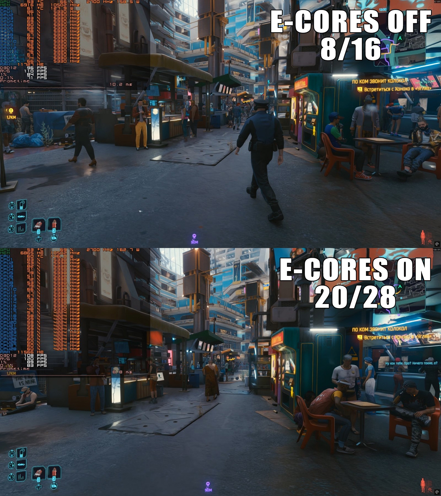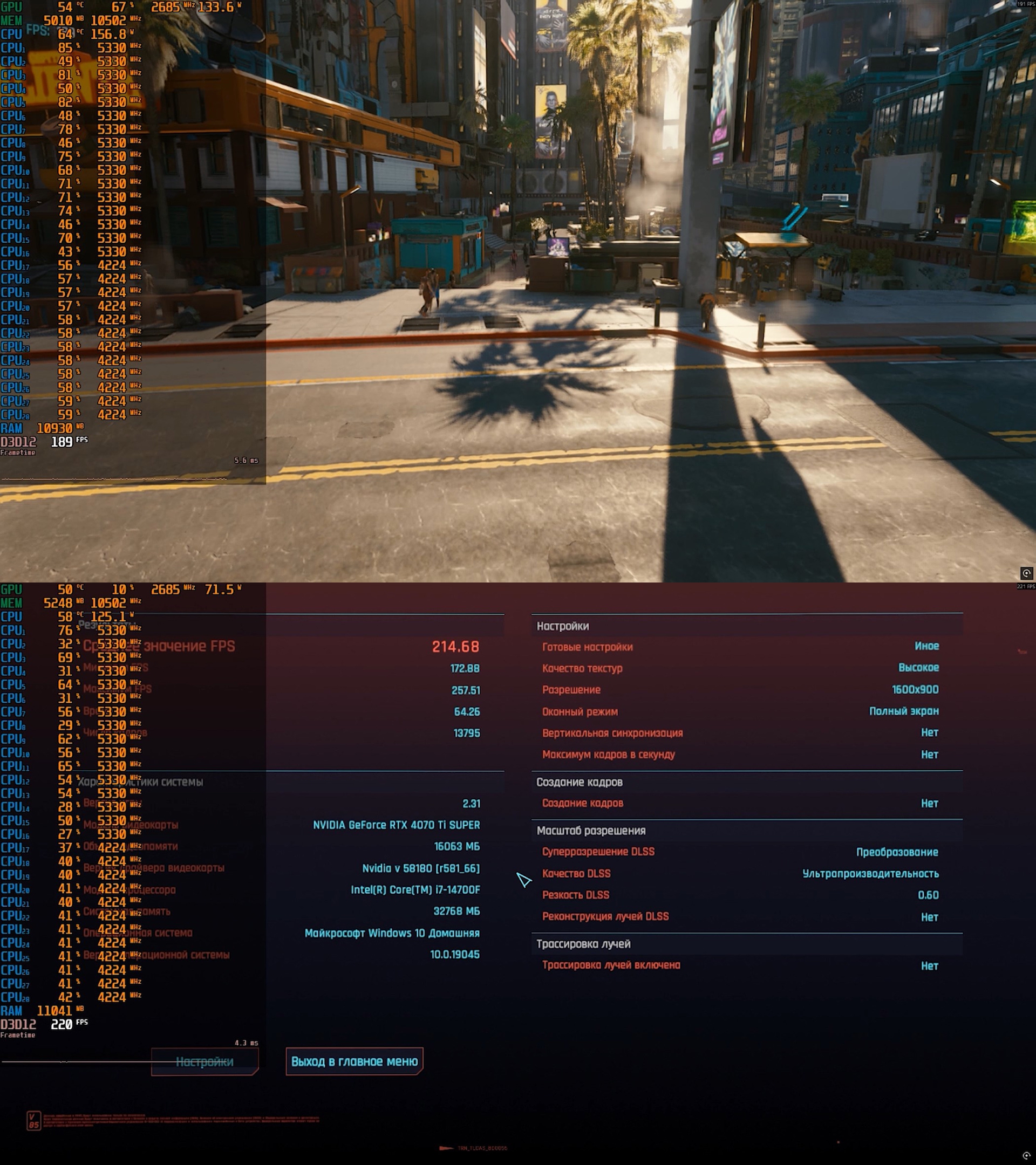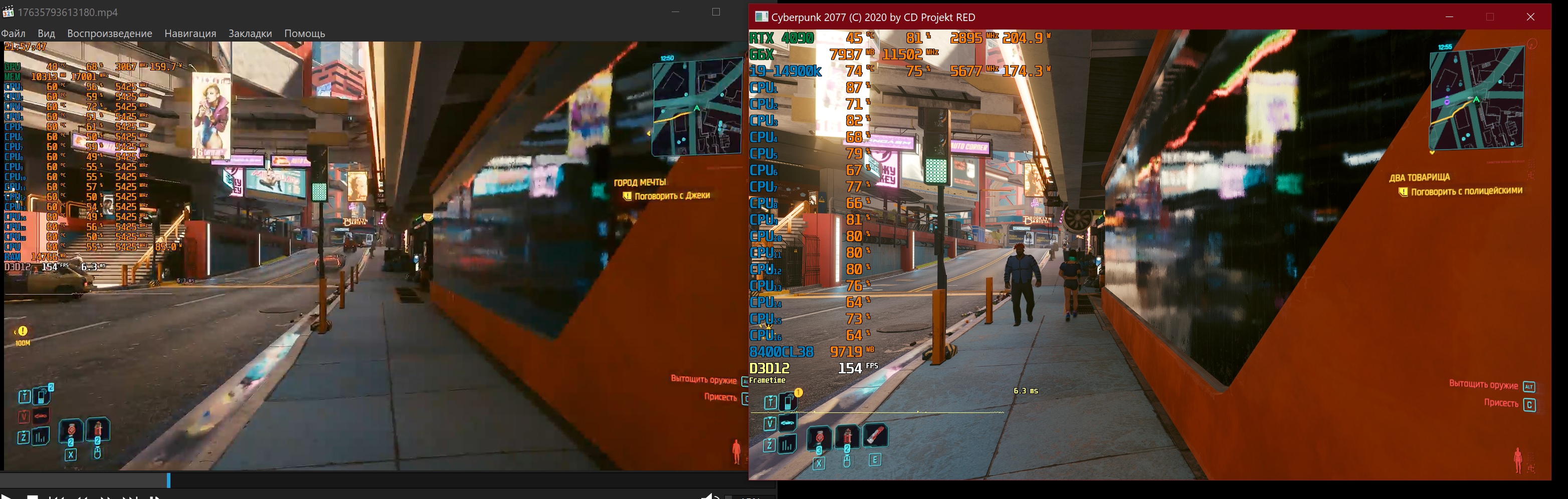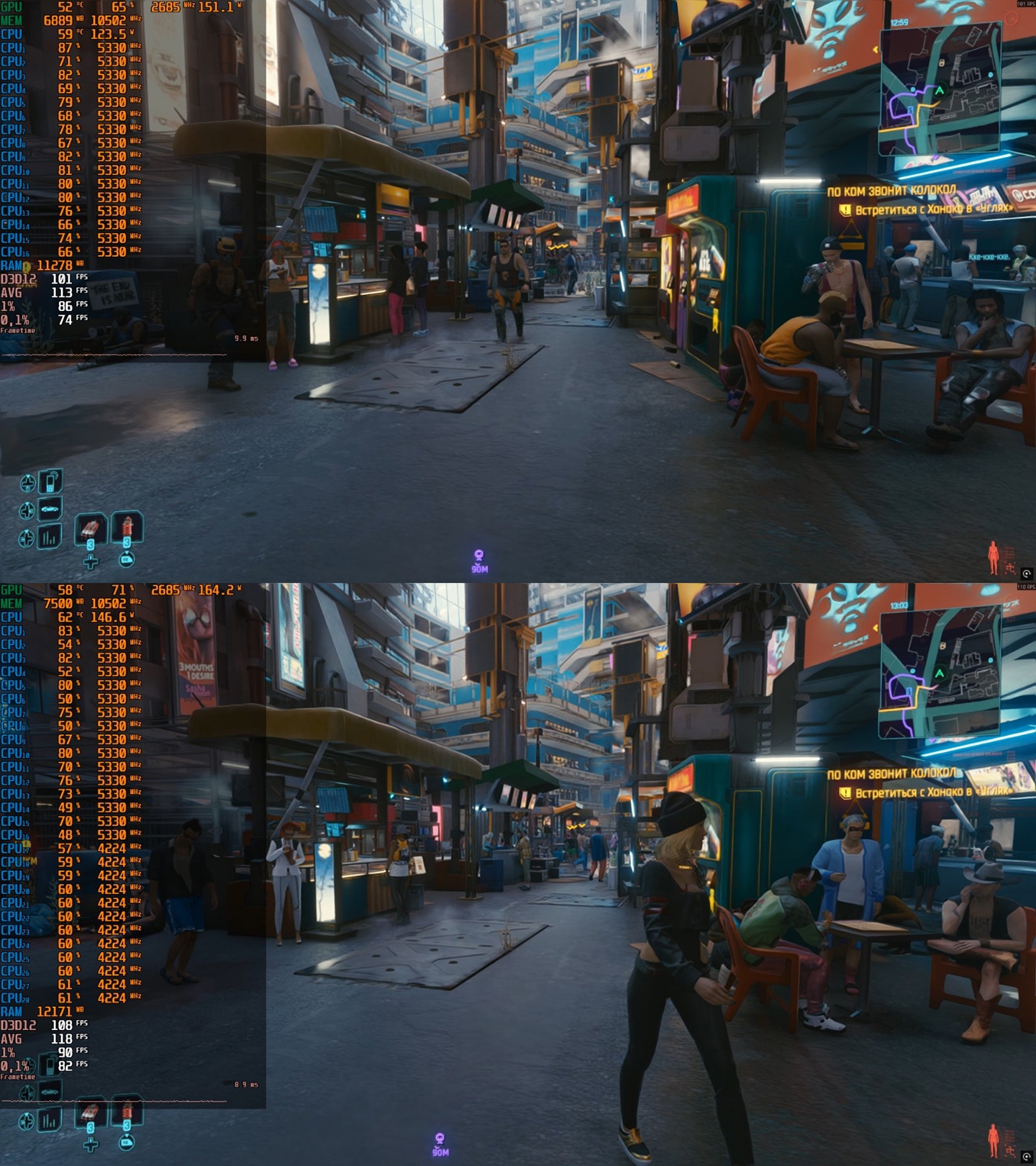 >>7569587 >Я просто хочу поиграть в 60 фпс в киберпанк, какую видеокарту и какой монитор мне купить? Процессора то понятное дело хватает Ох, ну раз ты вежливо просишь, сделал тебе тесты. Это 4к+макс+длсс баланс. Смотри, первая пикча 16 ядер. Вторая пикча, оставил в биосе только 4 ядра. И тут становится понятно, что проца хватит даже ЕСЛИ ЕГО НАХУЙ В 4 РАЗА ЗАРЕЗАТЬ. Всё равно идёт упор в видеокарту.
