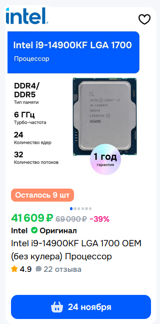Что взять на данный момент? Core i9 - 14900K с материнкой под LGA1700, и сидеть на нём до победного, пока Intel не выкатит новый сокет и новую линейку процев во второй половине 2026г. Или Core Ultra 7 265K с матерью LGA1851, заведомо зная, что это тупиковая херня, и проц не самый удачный.