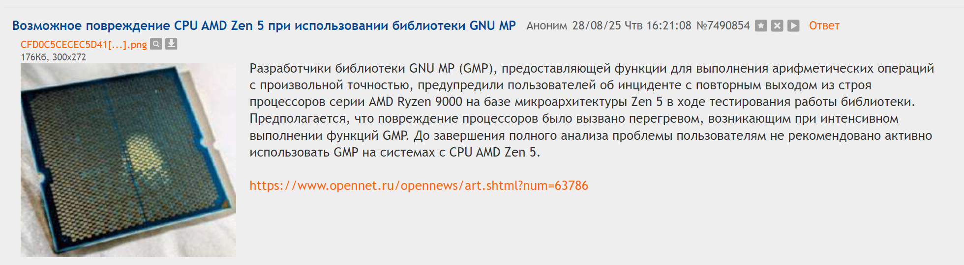 >>7571666 >у 13-14 поколения дефект на уровне говна в процессоре Ты это пишешь буквально в ответ на пикчу, где разбирается дефект в железе амд.