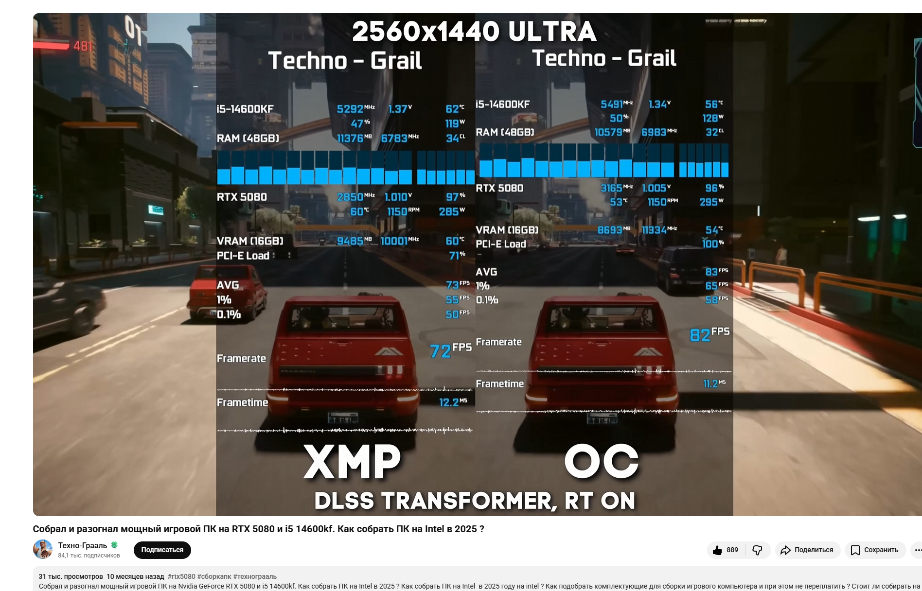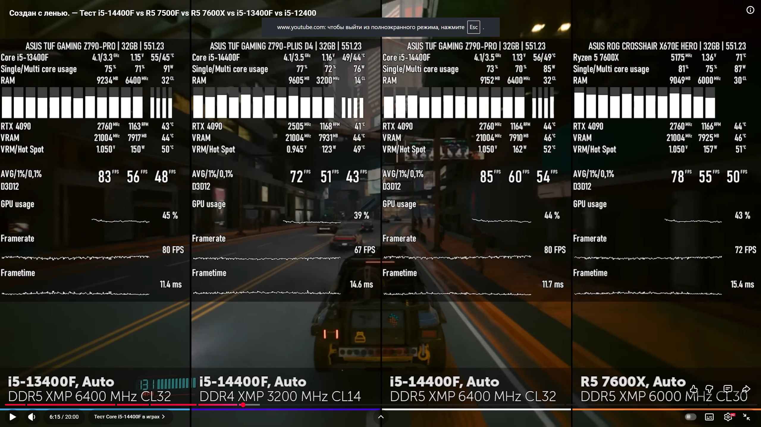 >>7626249 >Чем тогда можно обьяснить вот такой положняк? в киберсраке нету этих 30 процентов даже между 3200 и 6400 Их и в оригинальном посте не было, там +29% У тебя в тесте используется 14400F вместо 12600К - у него низкая тактовая частота и залоченный контролер памяти У тебя тесты 2-летней давности, когда игры и софт не умел использовать высокую пропускную способность DDR5-памяти У тебя ванильный Киберпанк, а там новейший Фантом Либерти У тебя другая тестовая сцена, менее требовательная к процессору и другие настройки И даже так у тебя прирост от DDR5 составил внушительные +19%, что недалеко от +29%