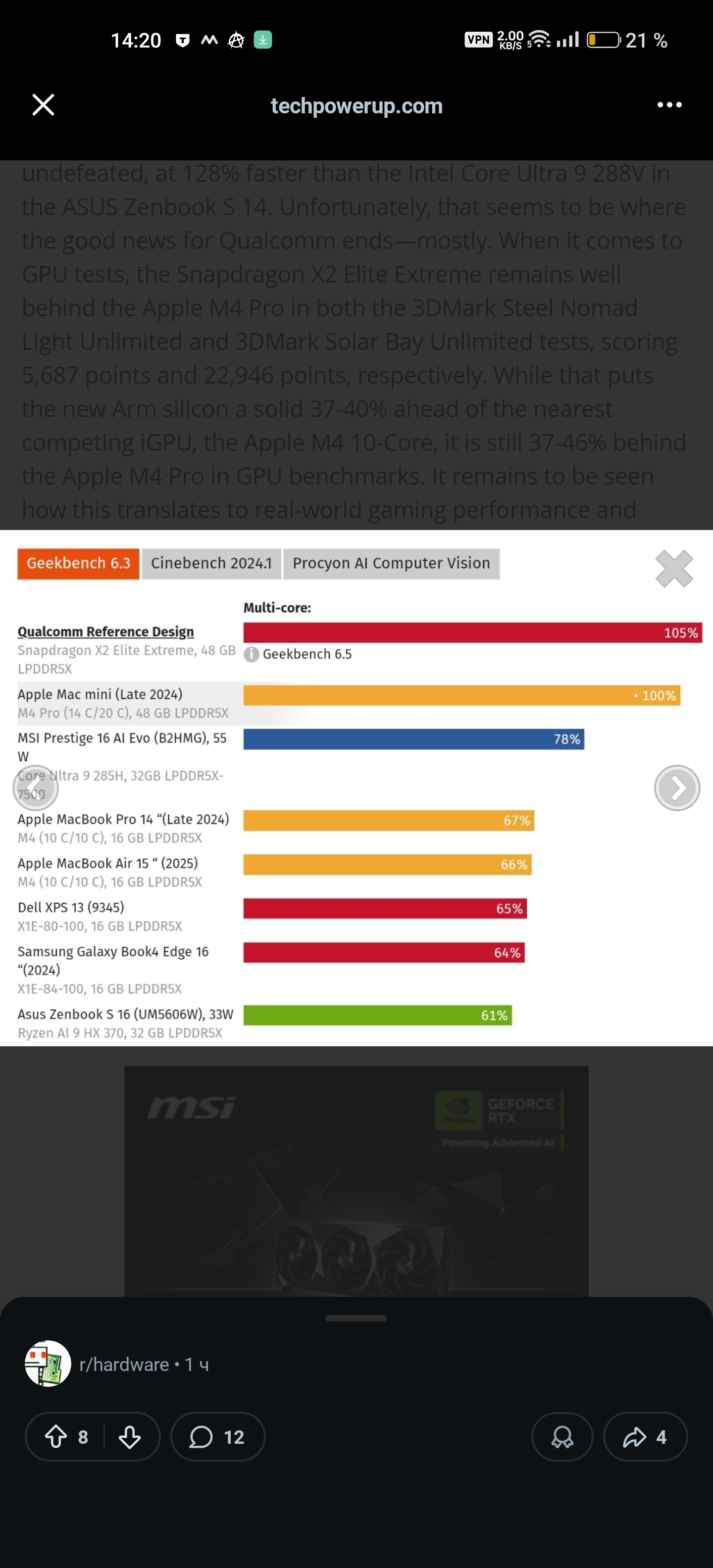 >Конечно все еще в джва раза медленее моей 4060 Тот факт что интеграшка без собственной памяти сравнивается с современной видяхой у которой выделенная память уже заставляет задуматься.