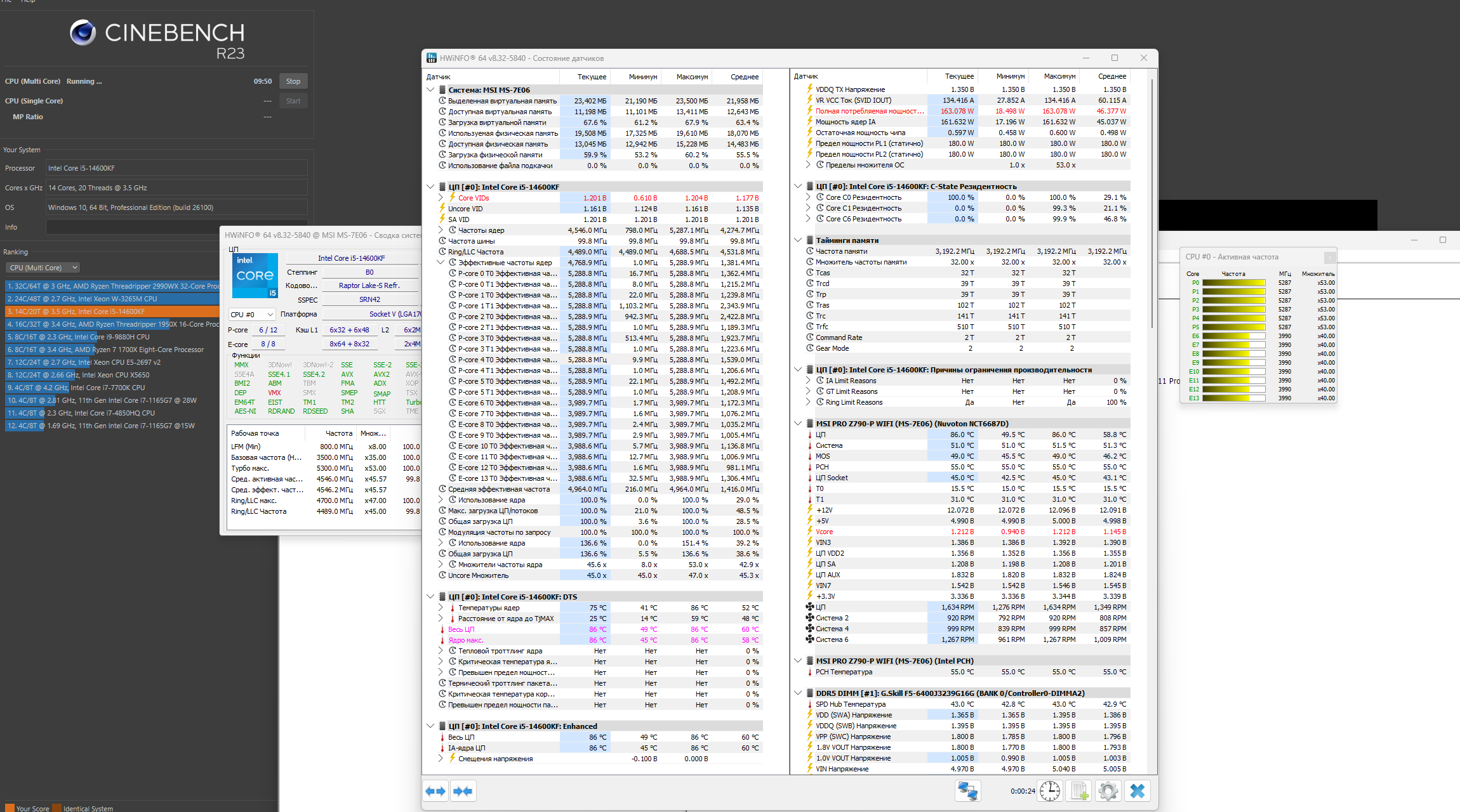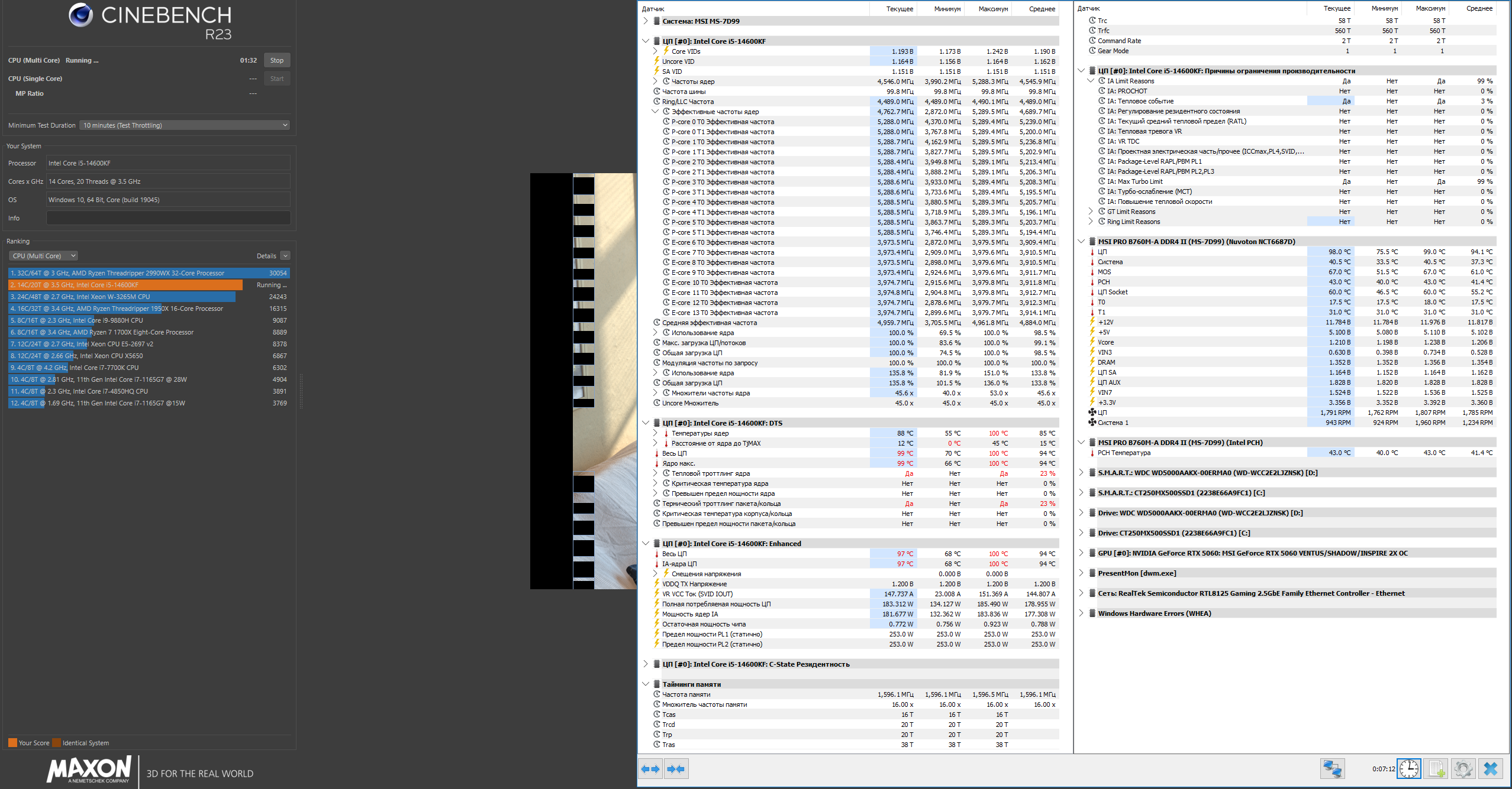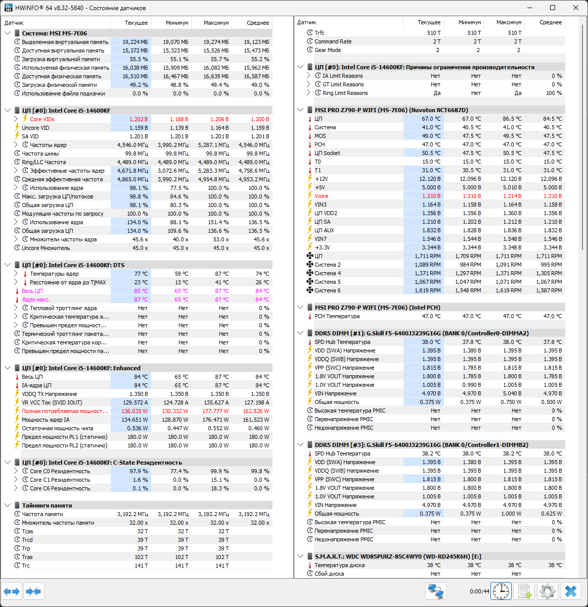 >>7626210 Клоун, я блять купил 14600к и з мать от мсины >>7624188 Поставил intel default 181вт, в cpu lite load тоже поставил intel default, включил хмп профиль. Биос последний, винда 11 На скрино глянь. Вот тебе Выставил и забыл. 1.5+ вольта накидывало хуесосня эта