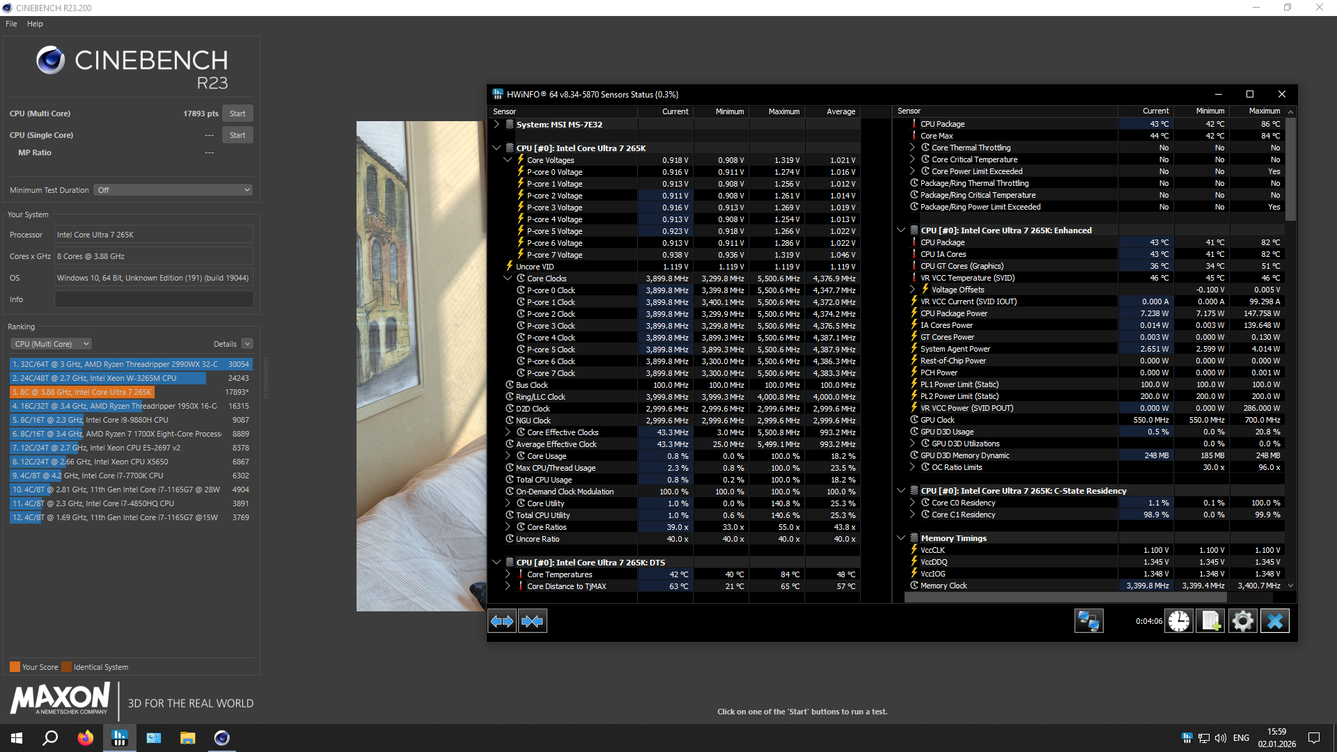 Переехал с 11400f на 245k. Это норма для arrow lake или нужен глубокий пердолинг? Первая конфигурация, которая загрузилась, помимо 6000 cl30 XMP. Память - kingston fury beast 6000mhz cl30