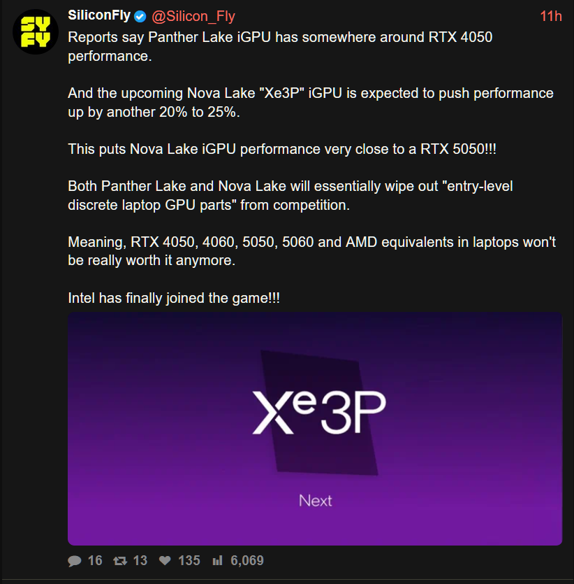 Итого графика Xe3 уже на 3-х техпроцессах существует. Вопрос что интел для десктопных видях на Xe3 выберет становится все интереснее и интереснее.