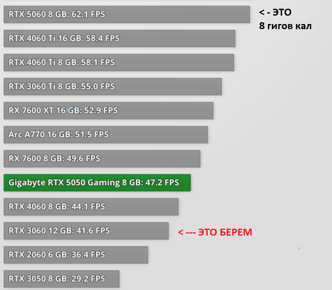 Бомжекарты у хаба смотреть сысла нет, они ультра вставляют и ноют про вирам вместо того чтобы вставить средние и тестить 60 фпс, а не 32 блядь