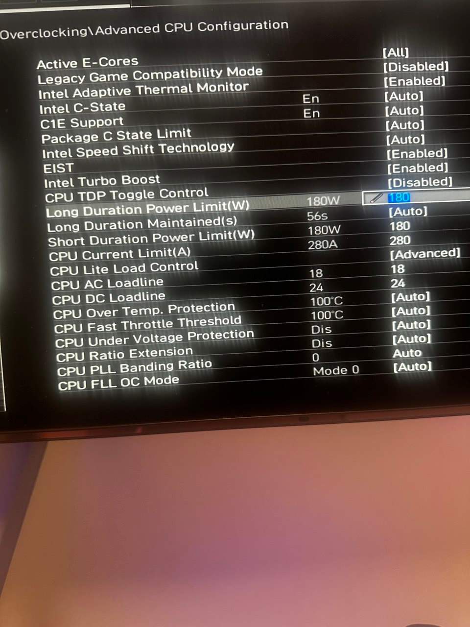 Но у тебя 253вт и 280А когда оф рекомендации Интел (и в обзоре на 3дньюс) это 181вт и 200А. То есть при этих настройках проц должен работать нормально. У меня же при 200А частоты падают