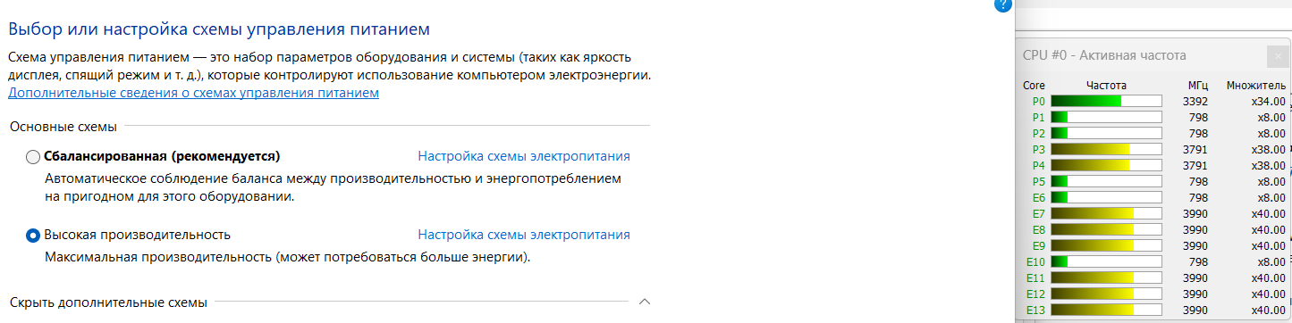 Это у меня на АНУС РОГ СТРИКС на Z690 и 13600каеф Настройки такие IA CEP отключен AC loadline 0.3 DC loadline 0.9 LLC level 3 Адаптив оффсет на ядра -0.175 В Адаптив оффсет на кольцевую шину -0.075 В Адаптив оффсет на L2 кэш e-шек -0.075 В Остальные настройки в БИВАСе - тайминги/напруга памяти и курва вентиляторов к процу отношения не имеют БИВАС в дефолте сам поставил интеловские ограничения - 181 Вт PL1/PL2 и 200A В винде паверплан "Максимальная производительность" и приоритет на P-ядра