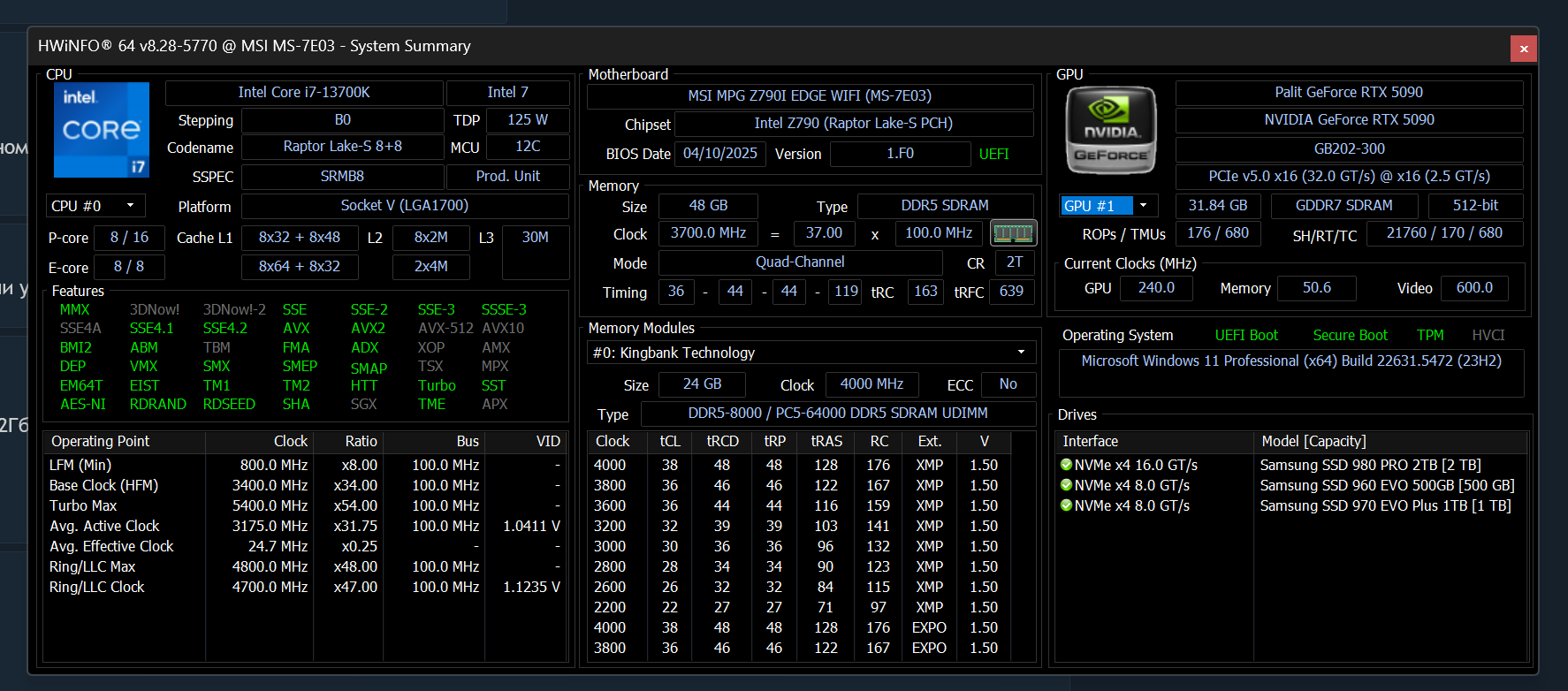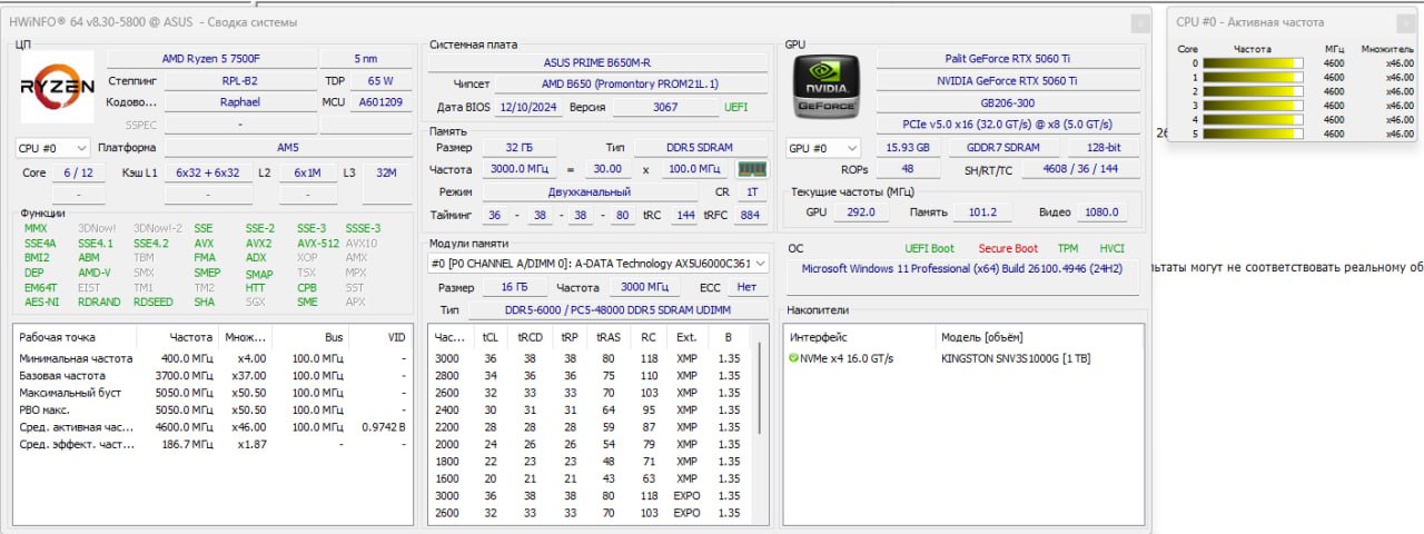 Пикрил - моя пека, собранная недавно. Комплектующие подбирал в первый раз, скорее всего насобирал говна. Про видюху не пишите, знаю, хуета. На частоту памяти не обращайте внимания, хвинфо бай дизайн отображает половину, на самом деле 3200