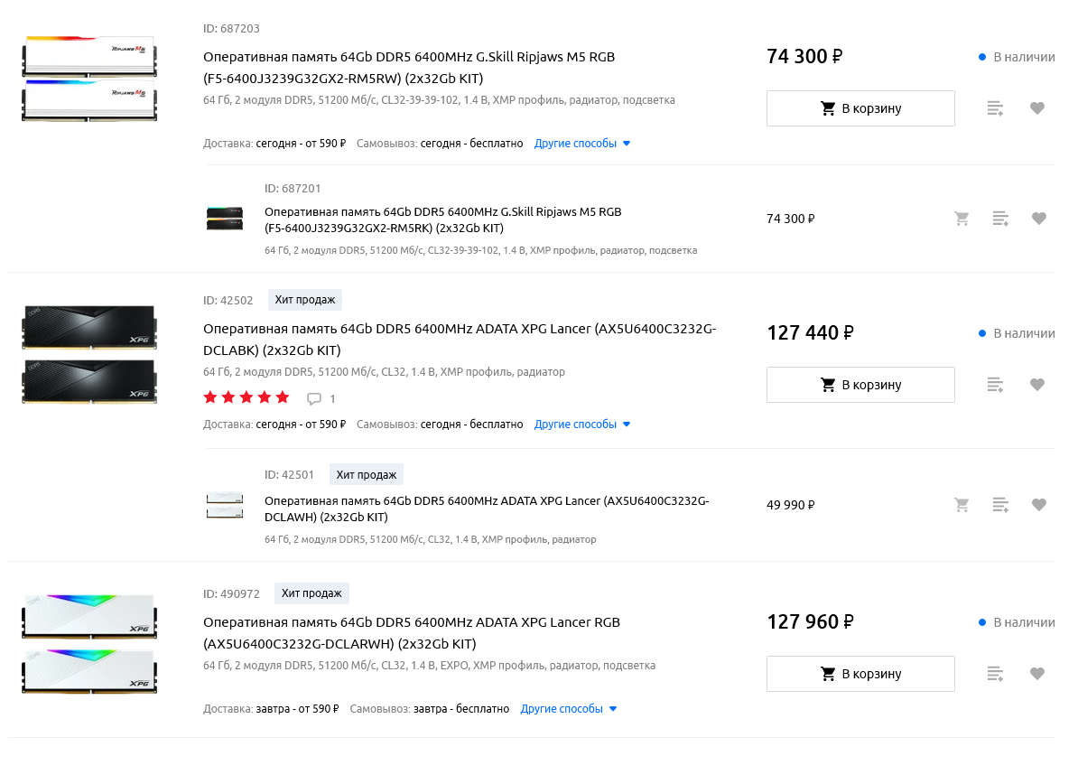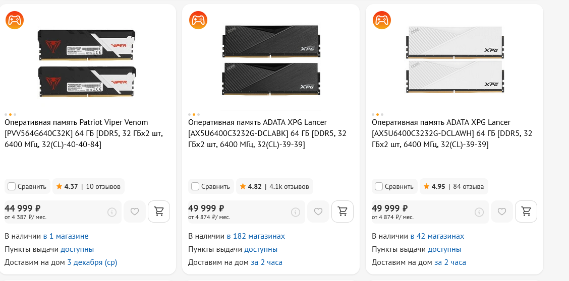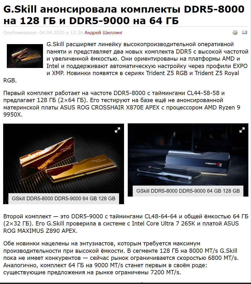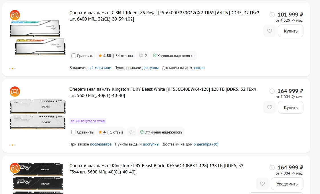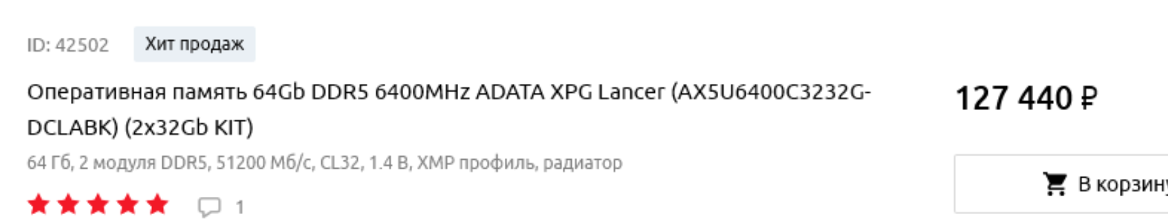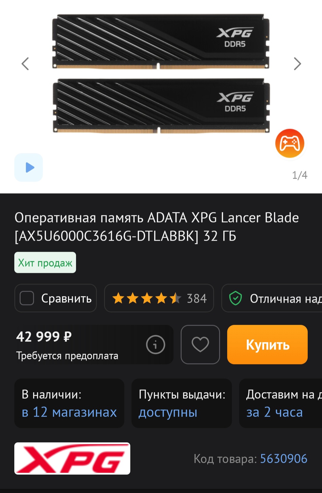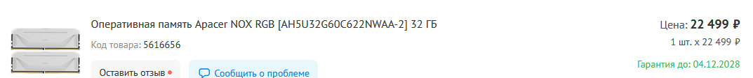 https://www.compday.ru/komplektuyuszie/moduli-pamyati/317919.htm опаньки, я полмесяца назад за 6кк рублей купил или типа того. Вот это шиза моё постение. Вовремя как доставить планку на 16 Gb GDDR4 купил, так как летом на дачу в тот комп память увёз доставить туда... Опаньки, вот это да заговор производителей. Видимо снимают чипы памяти DDR4 с производства Samsung и Micron... Переходите на DDR5, всем придётся силой насильно обновляться. Я на основном компе на Core Ultra 7 265k очень холодном и 4 планками DDR 5 игровыми от Patriot Viper Gaming Xtreme 5 24 Gb итого 96 Гб операвтивы. Играть в игры на UE5, например в TFD стало получше, чем на DDR 4, фризы и лаги ушли... https://www.compday.ru/komplektuyuszie/moduli-pamyati/317919.htm
