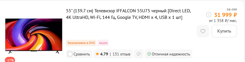 >>7529707 У них 32 4к олеги по 500 баксов уже бывают иногда. Например, самсунг G8 по акции в приложении недавно. И 3 года гарантии на выгорание повсеместно.