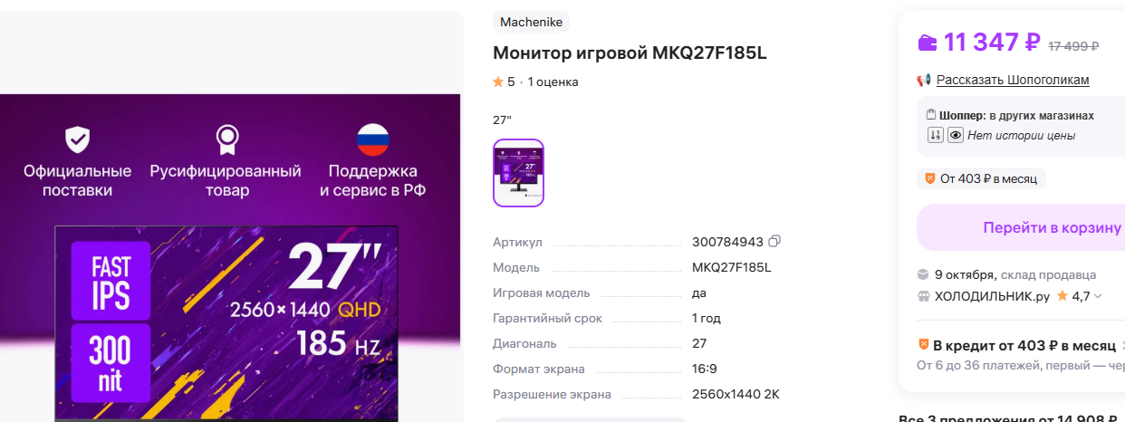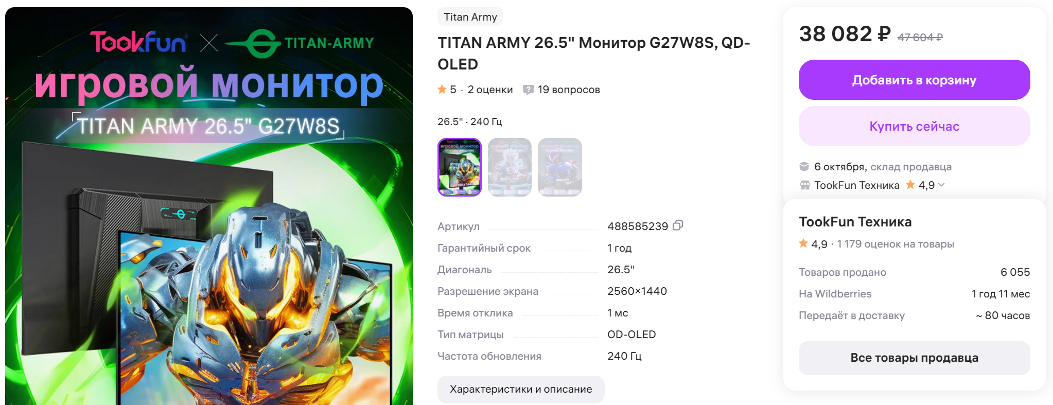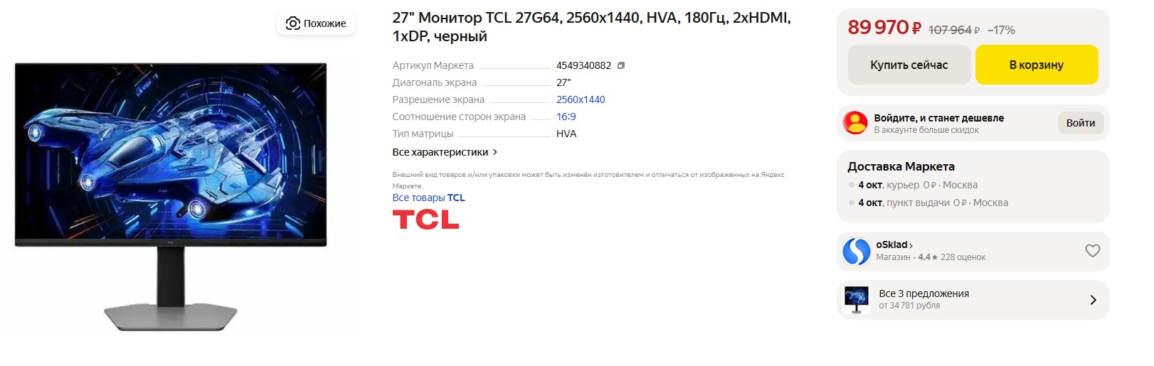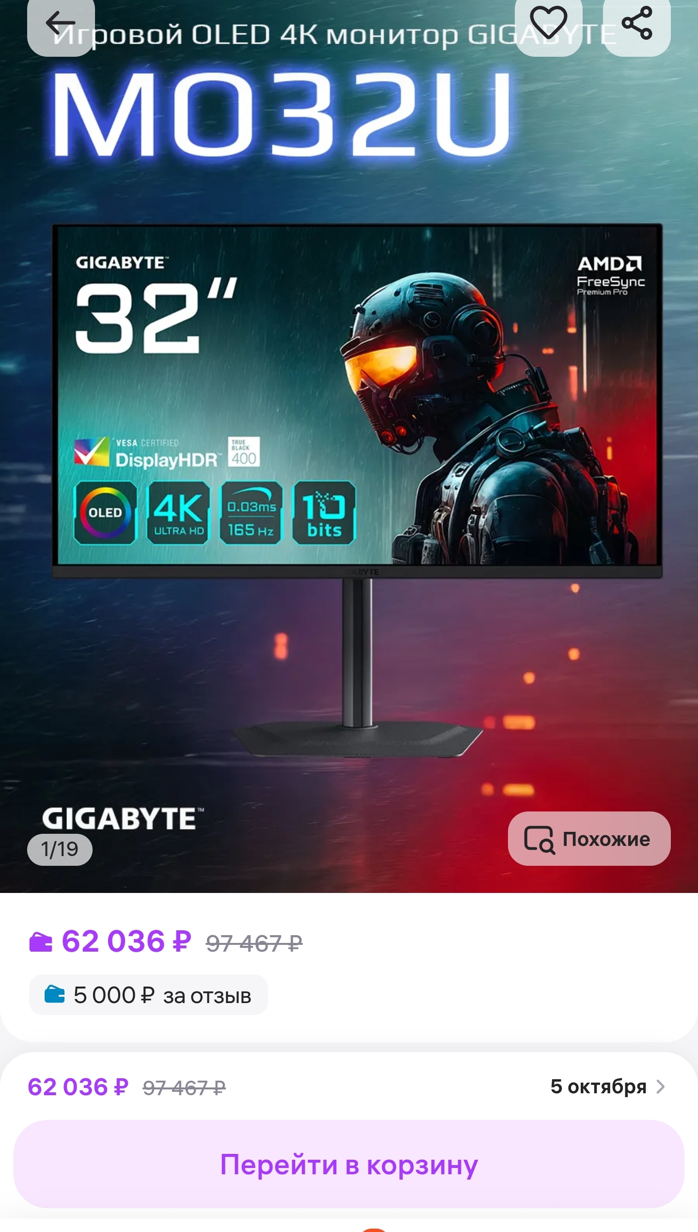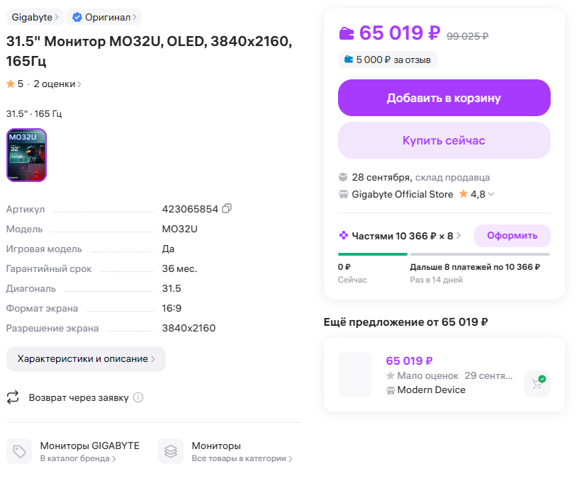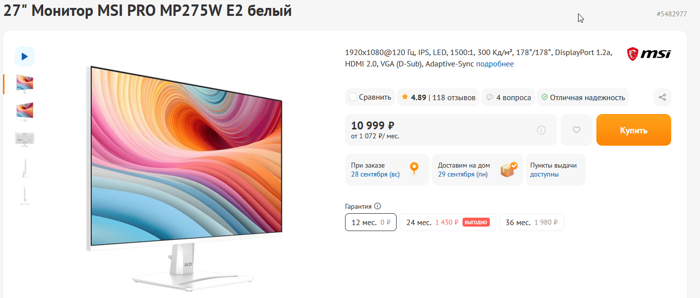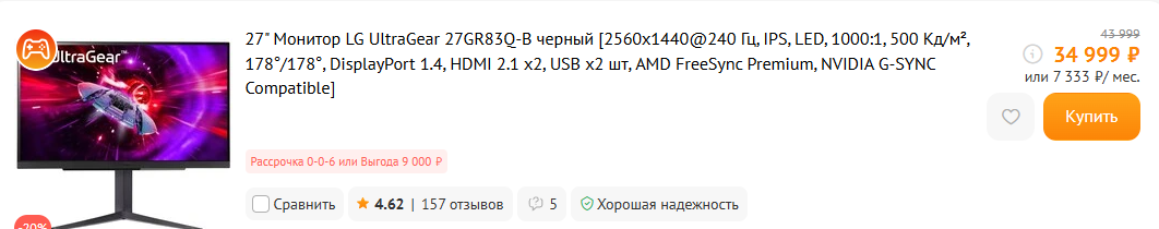 а) Проживая в Москвабаде околопопулярную технику лучше покупать на авито у перекупов. - Уже купил там ноутбук по цене 65к, который в магазинах стоит 85+. - Купил CMF pro 2 за 5к у официалов, а потом смотрю на авито он стоит 3к. - Ryzen 7700 в магазинах за 20к, а на авито за 14-15. - Теперь вот этот монитор, который в магазинах стоит 25к, купил за 20к - цена как на озоне глобал, только не нужно ждать доставки. И без казино - проверка на битые пиксели доступна сразу в момент покупки при кобанчике.