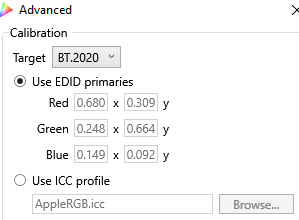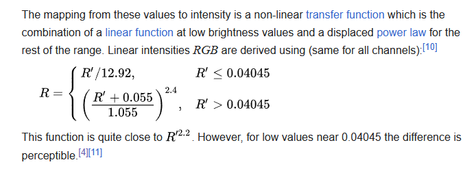 Так, важный вопрос. Хуй с ним с цветами, но в расширенном охвате используется гамма 2.2, а в сржб как бы своя 2.2, которая ближе к 1.8 по факту. Вот и выходит что контент сделанный под сржб не только другого цвета, но и гаммы, что уже хуже т.к ты не увидишь много деталей. Но все все равно используют 2.2, я правильно понимаю?