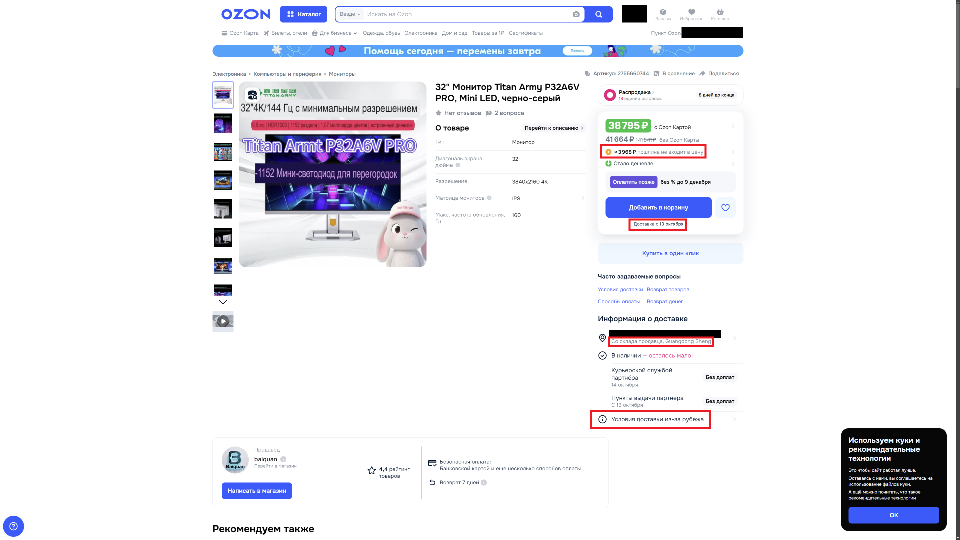 Хочу заказать с озона монитор MSI у официального аккаунта. На большинство позиций доставка 7-8 октября, так как отправляют с Китая, но нашел одну позицию, которую могут доставить 27 числа со склада партнера озон. Что это значит? Кто-то оформил возврат и товар хранится в РФ, поэтому доставка гораздо быстрее?