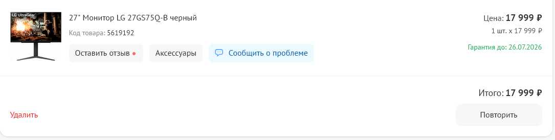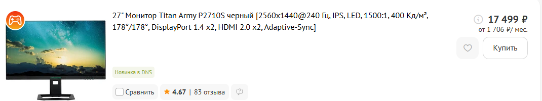 Что важно: 1. IPS и 27'' - как у текущего моника, полностью устраивает. 2. QHD. 3. 120+ Ghz (чем больше, тем лучше, в пределах бюджета). 4. Наличие колонок. 5. Бюджет: 30'000 рублей. Покупать готов как в DNS, так и на озоне/ямаркете.