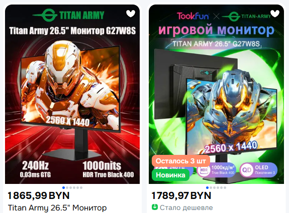 Хотелось бы понять, кто советует брать мониторы с маркетплйсов. Люди, которые уже хотя бы 2 раза брали оттуда и оба раза мониторы прослужили больше 3 лет есть? Сколько их по сравнению с теми, у кого начался писк, дрызг, полосы за 3 года? Вот я возьму это: https://www.dns-shop.ru/product/6320c74121b6d0a4 или это: https://www.dns-shop.ru/product/bd0f5dc5312dd9cb с 3 годами гарантии и пусть его в случае поломки осматривают месяц, но деньги вернутся. А хули с титаном с Озона делать?