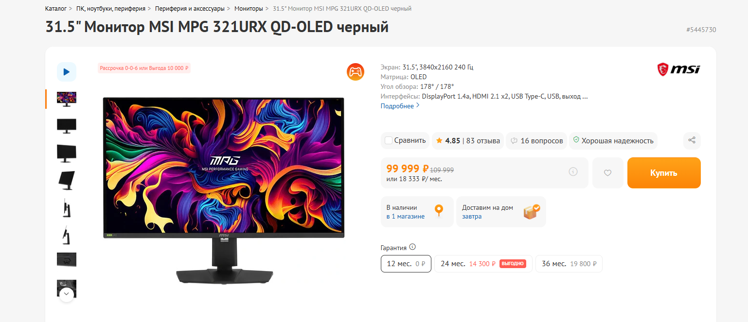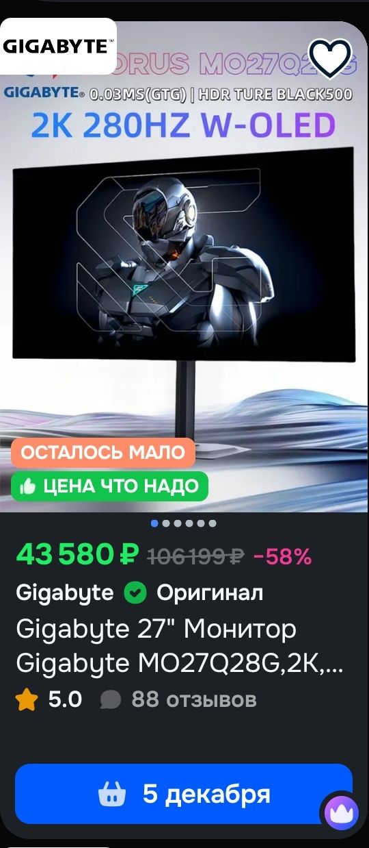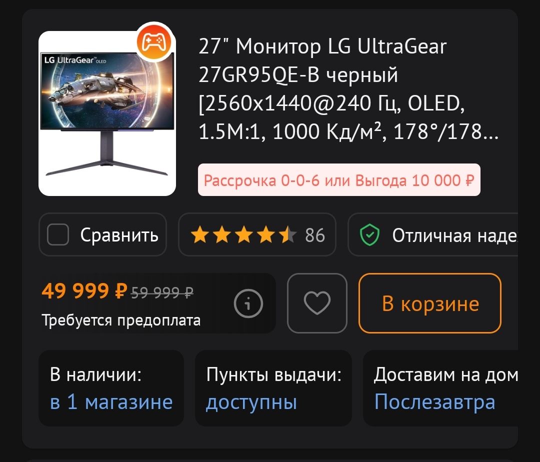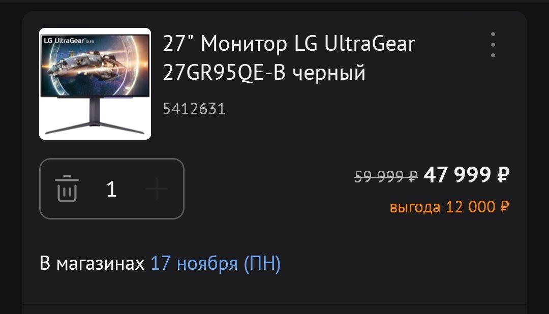 Днс походу наебался с ценой дико успел заказать LG UltraGear 27GR83Q-B за 20к нахуй. Новый. Через 20минут страницу с моником удалили к хуям. Но мой якобы едет уже. Анону за наводку спасибо.