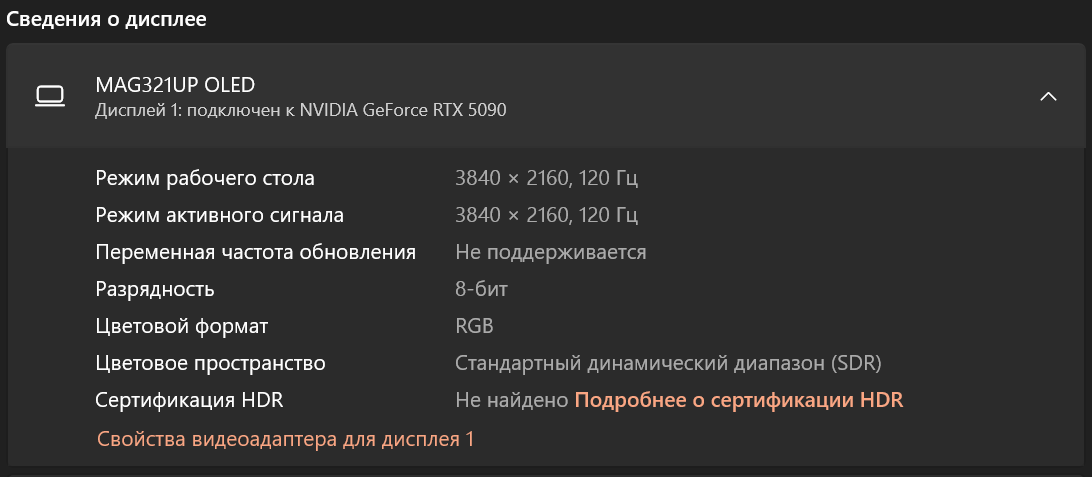 И тащемто все работало из коробки, нужно было лишь выбрать нормальный режим в мониторе. ХДР включался как надо, в СДР все было збс итп.
