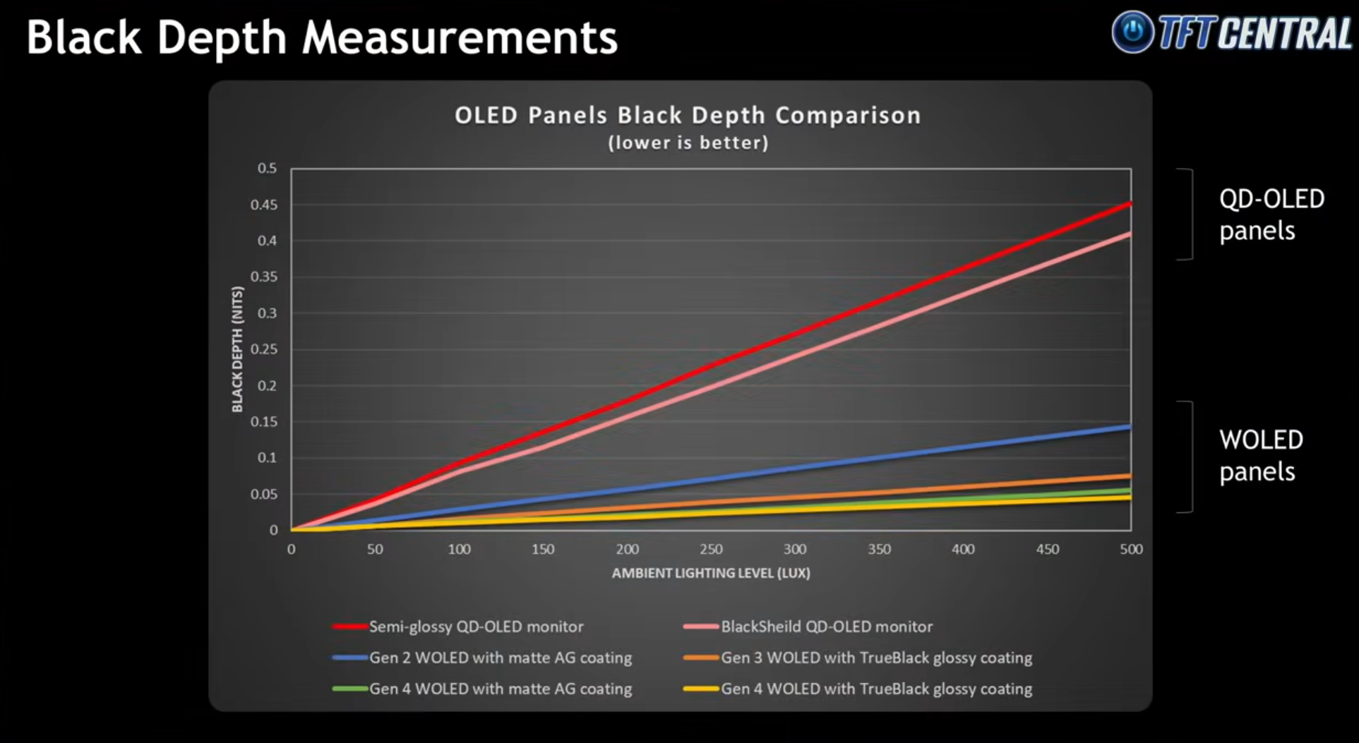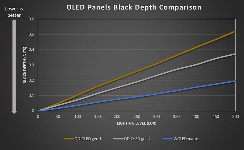 >>7625550 Реальность перед тобой в этом графике >>7625536 При максимальной яркости QD-OLED в 250 nit, у IPS контраст становится лучше после уровня освещения в 1000 lux. Это весьма прискорбные результаты для фиолетового лагеря, нужно думать о занавесках.