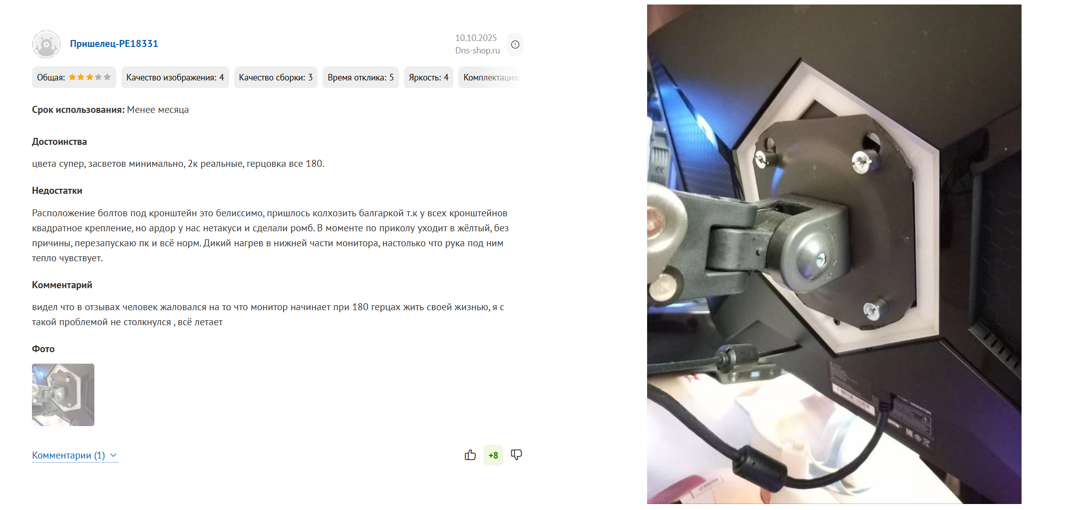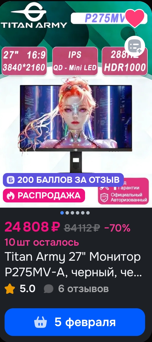 2+ года назад взял себе лыжу 1440р 180гц ипс за 35к. В одном углу экрана если на чёрную картинку смотреть (на чёрном заметнее всего), то оранжевым отдаёт, не ебу как это правильно называется, глоу или блид или ещё как. Когда в магазине на битые пиксели проверял, не заметил к сожалению. Ну и с ипс понятное дело черный - не черный, а больше серый, хотя я на минимальной яркости сижу и не так плохо выходит. Ну короче затерпел. Сейчас мамке нужно было взять моник под ексель с ютабами. Решил ей взять тоже 1440р. Цены от 10к и то будет самый кал ес-но. Выбор пал между каком-то 100гц офисным калом за 15к и гоймерским 200гц асером за 14,5к. Взял короче асер, принёс домой и как-то прихуел. Чёрный чернее, картинка полностью ровная - никаких переливов/засветов/глоу/блидов и т.п. нет. Всяких настроек в ОСД больше. Оба монитора переключил в сргб, но исходя из доступных настроек у асера вроде покрытие больше. Встроенные динамики (мамка хотела) тоже не самый мусор, на мой взгляд по крайней мере. Из минусов ножка не самая устойчивая и только наклон регулирует. И на удивление углы обзора определённо похуже чем у моего, хотя оба моника вроде ипс. И это в 3 раза дешевле лыжи.
