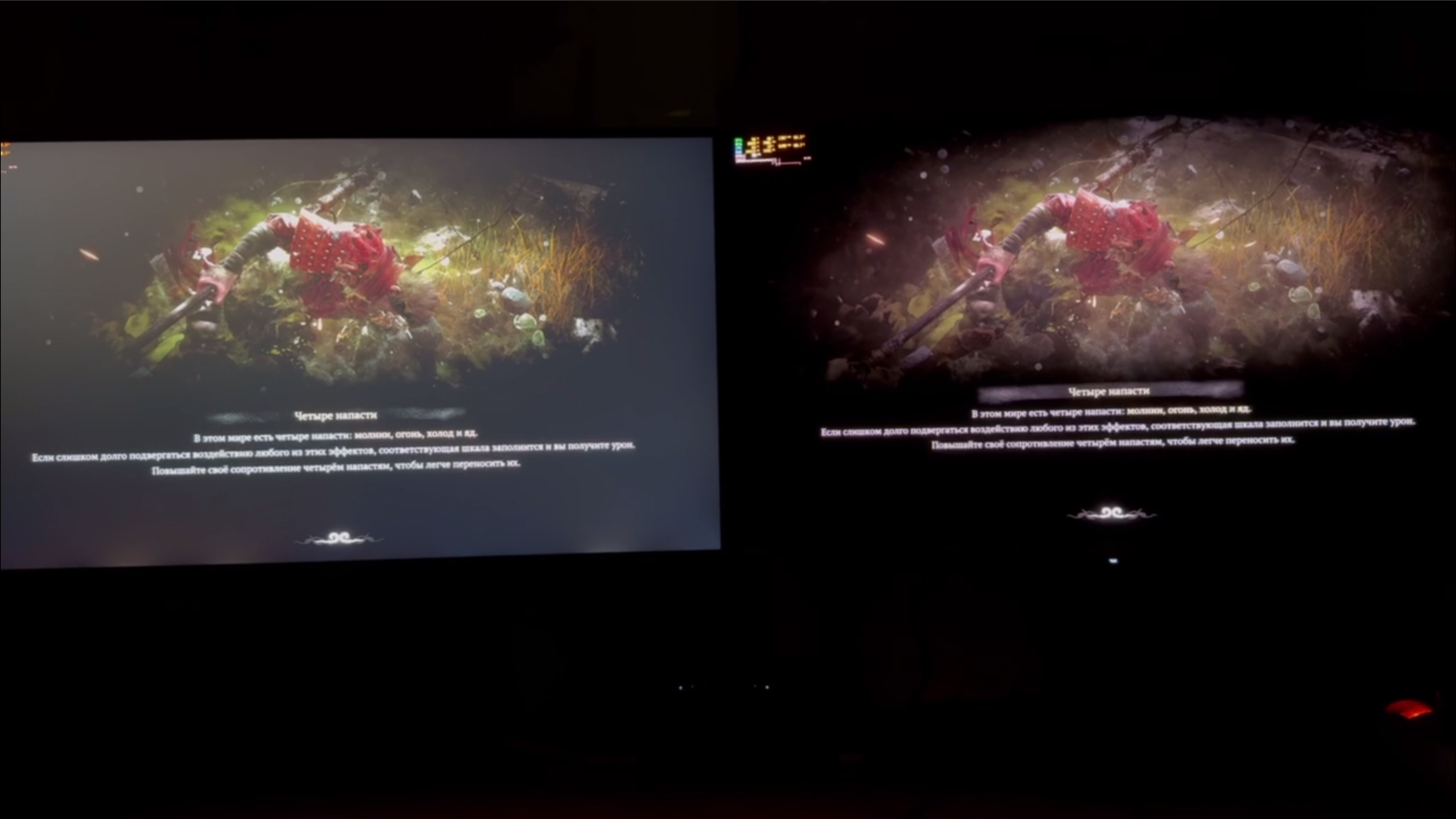 HDR сцена из Final Fantasy XVI, минилед против нового primary rgb tandem OLED. Бедняжка олед так и не смог прыгнуть выше 450 cd/m2, ведь в сцене не нашлось объектов на 0.0001% экрана, где он мог бы щегольнуть своими 1000 нитами. Стоит ли вообще называть подобный уровень производительности высоким динамическим диапазоном?