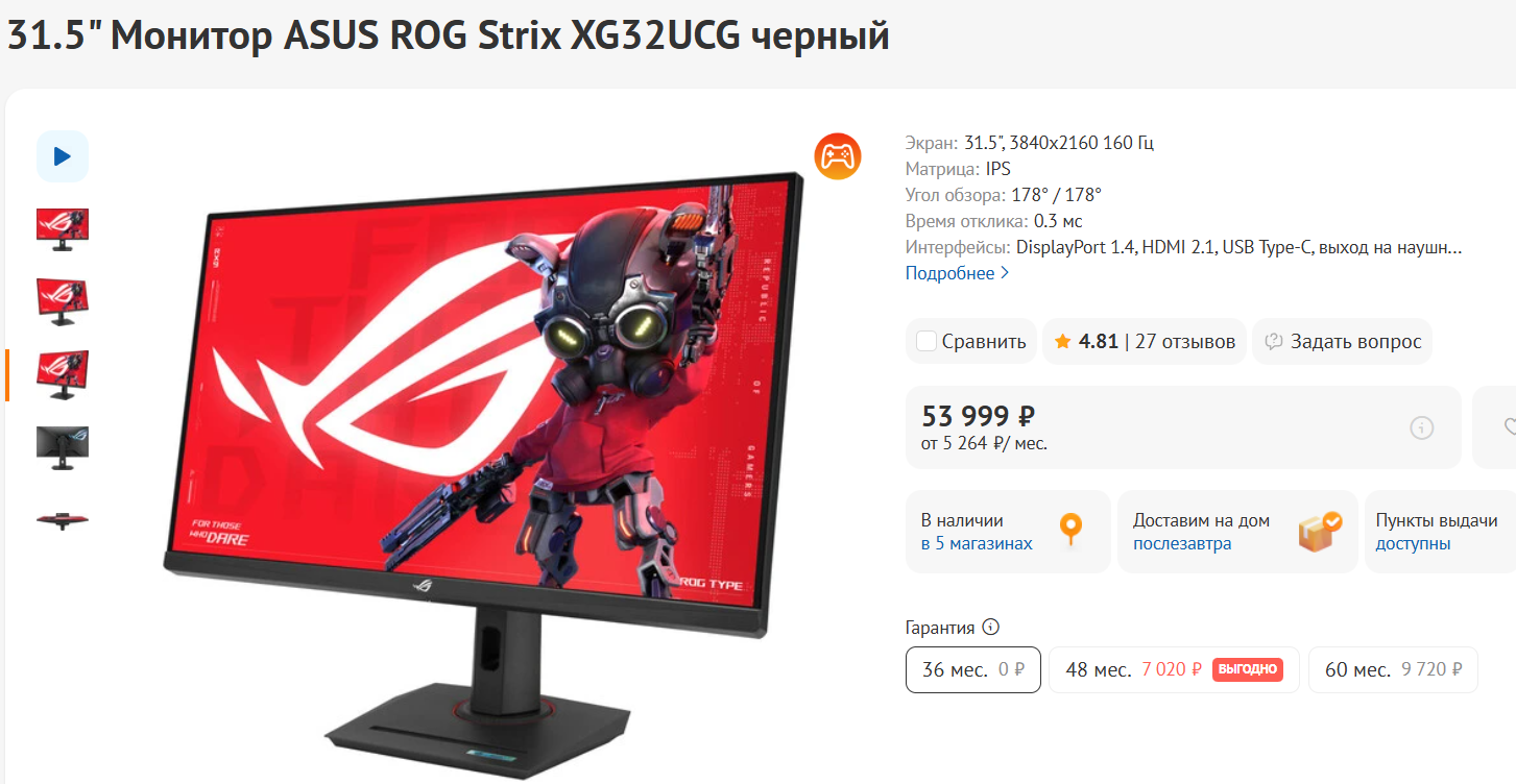 >>7618451 >стоит ли сейчас брать 1440п олед 240 гц с доставкой из Китая в пределах 35к Конечно, стоит. Есть кд-олед мси от 30к годнота, есть титан арми не пользовался, но его тут форсит фанат инноцн как самого лучшего производителя дисплеев. У этих мониторов только один недостаток - на их покрытии хорошо заметны отпечатки пальцев, кожный жир и прочее. Если привык есть за монитором и заляпывать его, то придется купить жидкость для мытья дисплеев за 100р с микрофиброй. Еще тут всплывает недорогой тандем от гигабайт, которые заявляют о гашении 99% отражений у покрытия пиздят, но им тут никто не пользовался кроме одного анона, который больше не постит. С ним есть вопросы, в частности, про полосы на сером цвете, но, мне кажется, в бытовом использовании должен быть норм. Про мелочи вроде углов читай обзоры. Если сильно паришься за вероятные битые пиксели, то иди в днс, но там монитор будет 50-55к+, кроме одного бичевского самсунга на 180гц я бы не покупал. мимо кд-олед-боярин