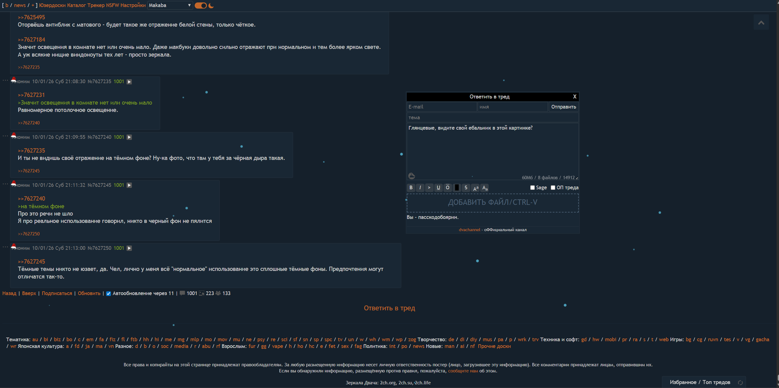 >>7618328 Не корми траля, он тут уже не первый день глупости пишет. >>7612937 >маскирует отражения Ты пока самый тупой анон в треде, ноудискасс. мимо кд-олед-боярин