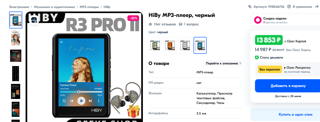Задача: нужна функция карманного радио и максимально низкий вес. Качеством звучания можно пожертвовать, тем более, hi-fi плеер уже есть - но он тяжёлый и без приёмника. Нужен, соответственно, лёгонький ФМ-приёмник, который большую часть времени будет лежать в сумке неактивным. Как я понимаю, оптимальнейшим вариантом будет мп3-плеер Дигма Р4 - 1400 руб. на маркетплейсах, 20 грамм весу. Из конкурентов могу назвать только другую Дигму, которая в формате флэшки и с монохромным экраном, но она почему-то стоит дороже. В целом, похуй, разница порядка 200 рублей, но Р4 явно лучше по ТТХ. На маркетплейсах ещё можно найти радио без нихуя за 500 рублей, но явно лучше вложить косарь в девайс от проверенного производителя и иметь в запасе МП3-проигрыватель, чем сэкономить и купить хуй пойми что.