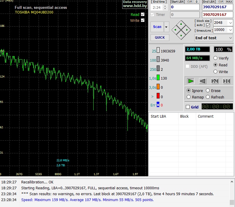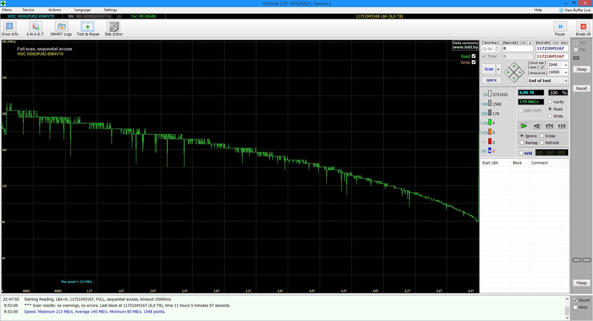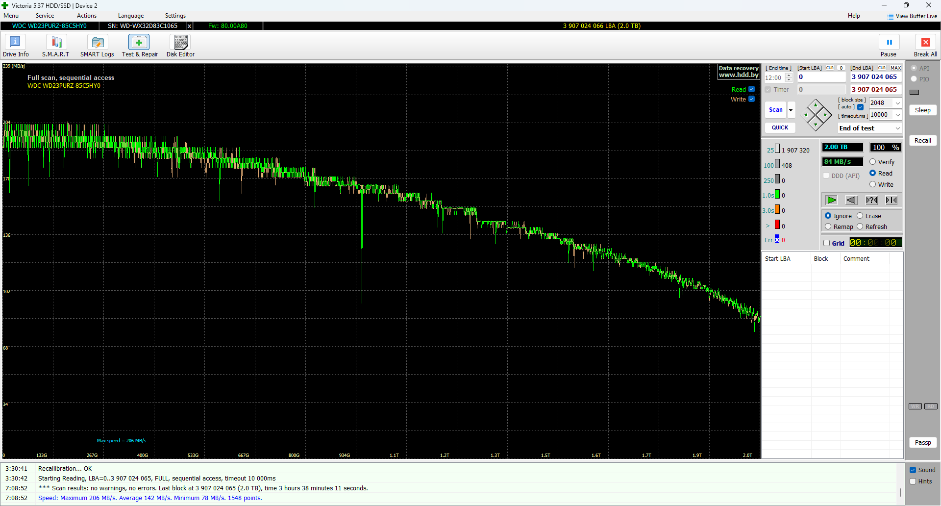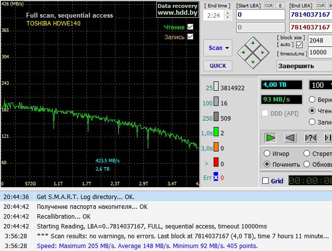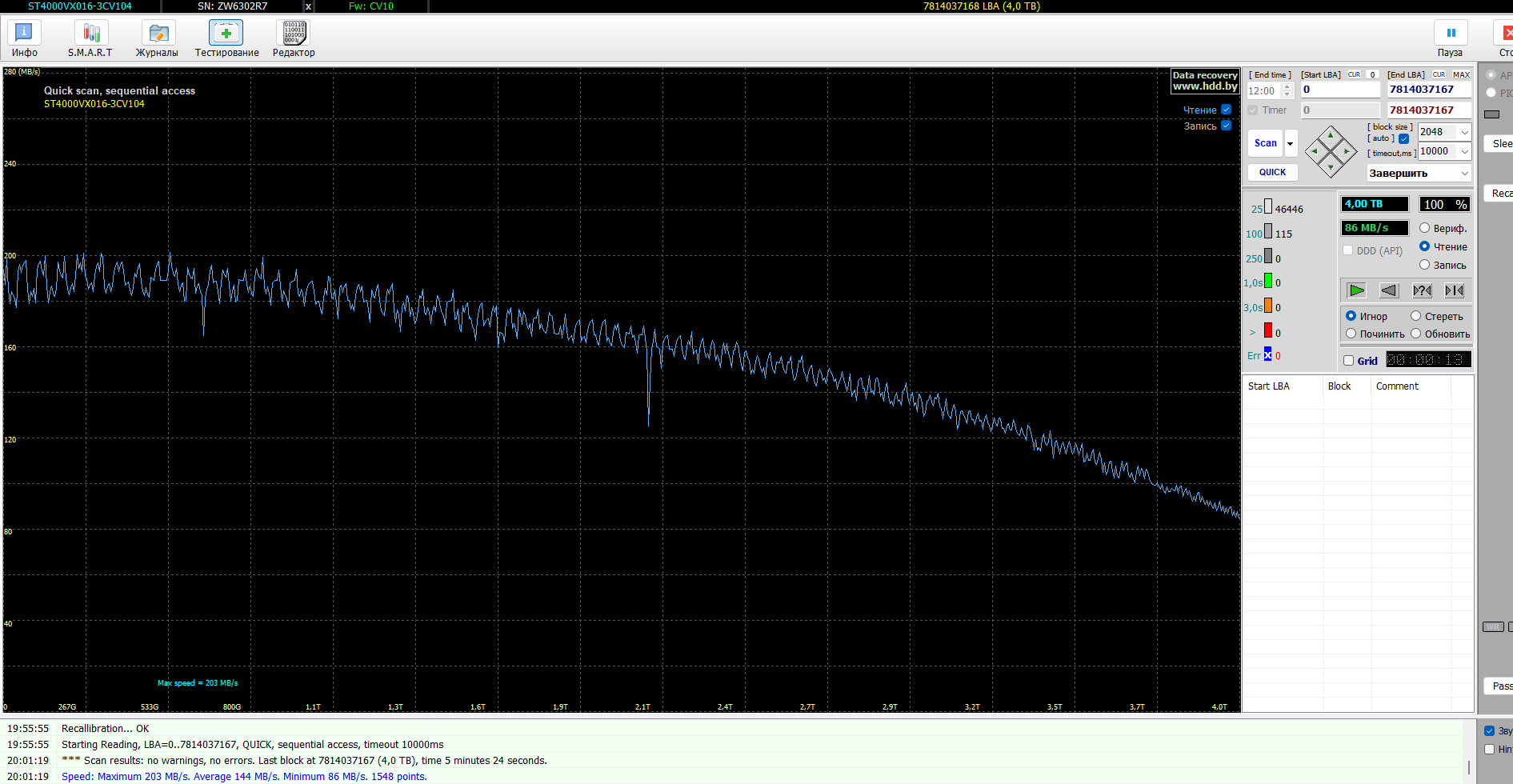 C этим что-то мутное творится, странные графики и перепады скорости. Вроде как CMR, но график чтения и записи на разных скоростях (а у CMR зеленая и коричневая полоска должны быть примерно на одном уровне), но скорости вроде не совсем smr (нет просадок до 1мб/с), какой-то продвинутый smr.