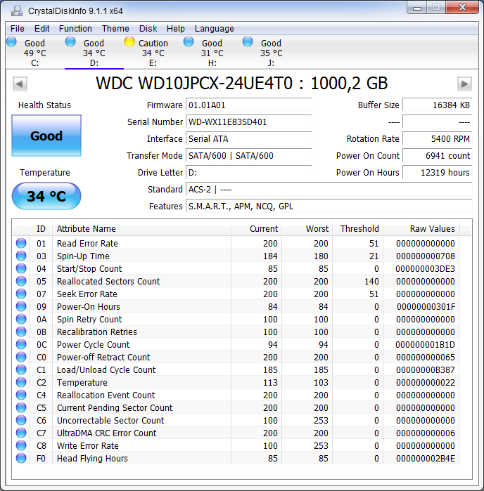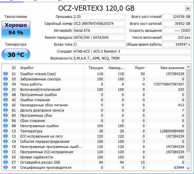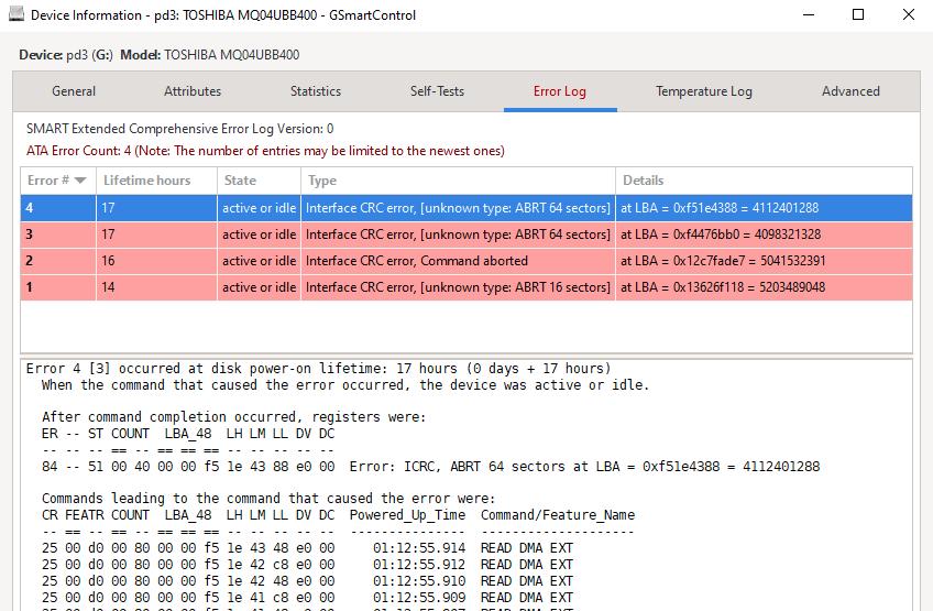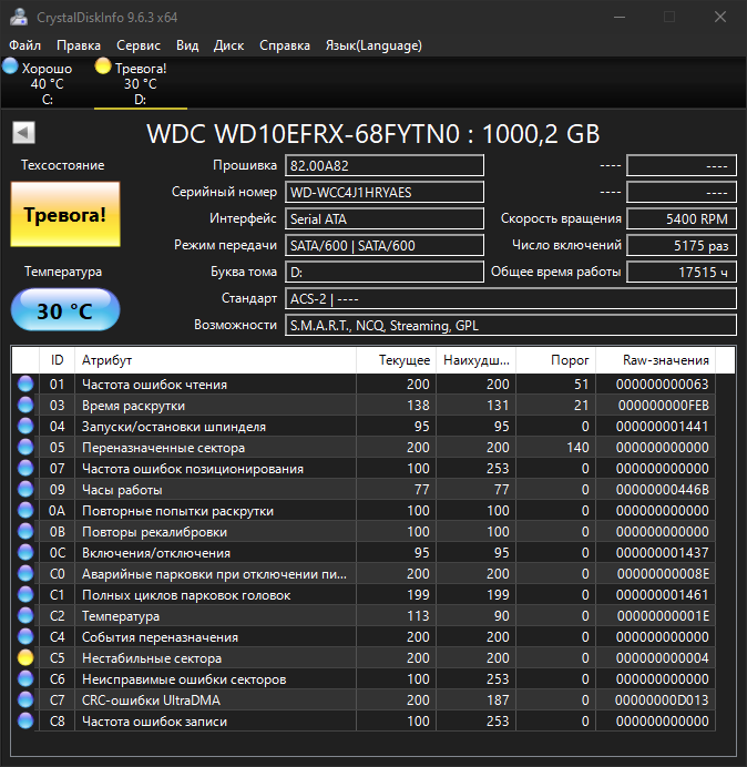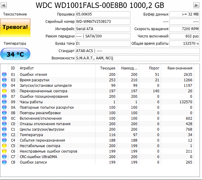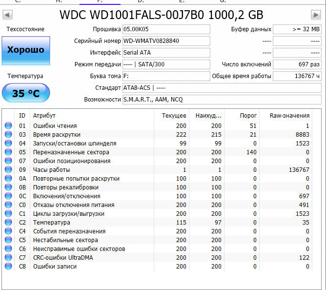 Ну и CRC ошибки - хотя это часто проблемы не винта, а провода или плохого контакта. У меня однажды винт нахватал двести тыщ CRC ошибок, потому что один сата порт на материнке начал глючить - то ли окислились контакты, то ли он "сгорел", в смысле повреждена частично микросхема чипсета, отвечающая за один порт из шести имеющихся на плате.