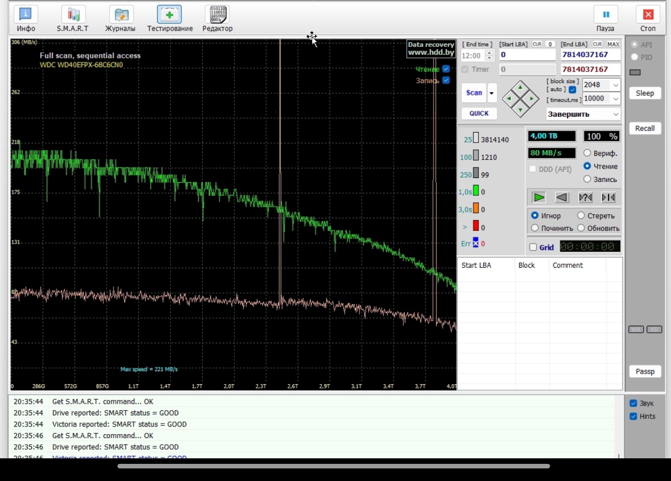 Ну это обязательно перед пользованием чтоб знать состояние. Выкладывай конечно, интересно будет увидеть график чтения/записи, надеюсь что там не будет ничего странного.
