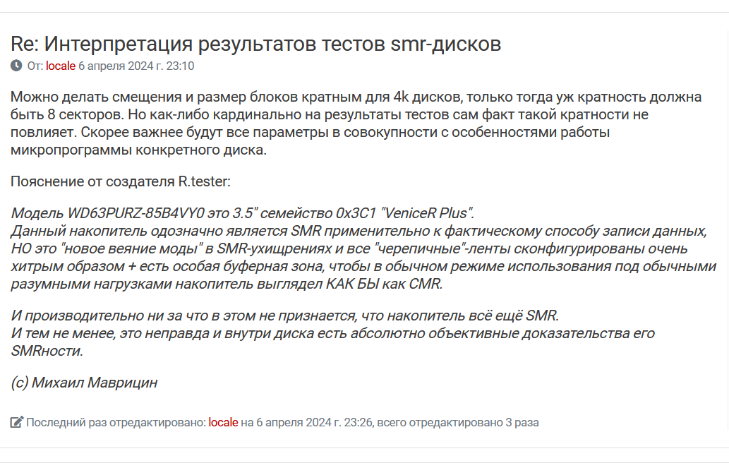 И производительно ни за что в этом не признается, что накопитель всё ещё SMR. И тем не менее, это неправда и внутри диска есть абсолютно объективные доказательства его SMRности.