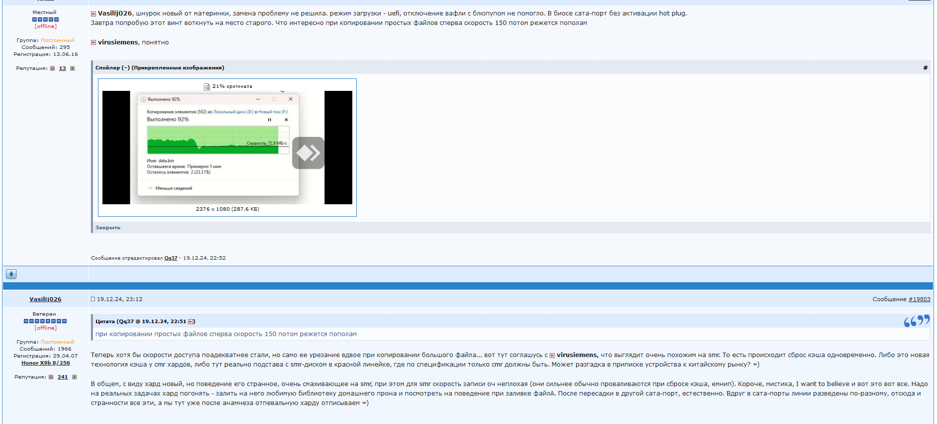 Но это все лирика, по делу вроде нормально все. Диск 2021 года выпуска, 20к часов как и обещано, был забит какой-то китайской хуйней, видимо чию фармили или еще какую залупу. Форматнул, покидал файлишки туда-сюда, вроде нормально. Основательно тестить сейчас сил нет, всю ночь не спал, пойду прикорну. Посоветуйте чем его попытать можно чтобы очевидные проблемы выявить, если имеются.