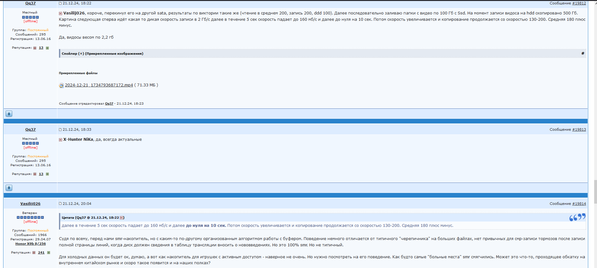 К слову о скорости, я немного охуел когда он под 300мб/с выдал при записи, это считай половина сата ссд. Это давно у хардов такие скорости? А то я лишь недавно приобщился, долгое время только на ссд сидел, поэтому могу сравнить лишь с совсем древним хламом которому и 100мб было много не смотря на те же 7200 оборотов.