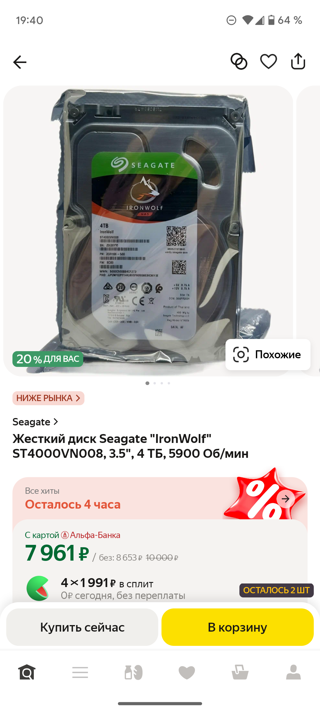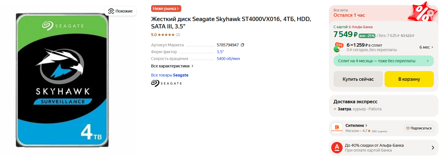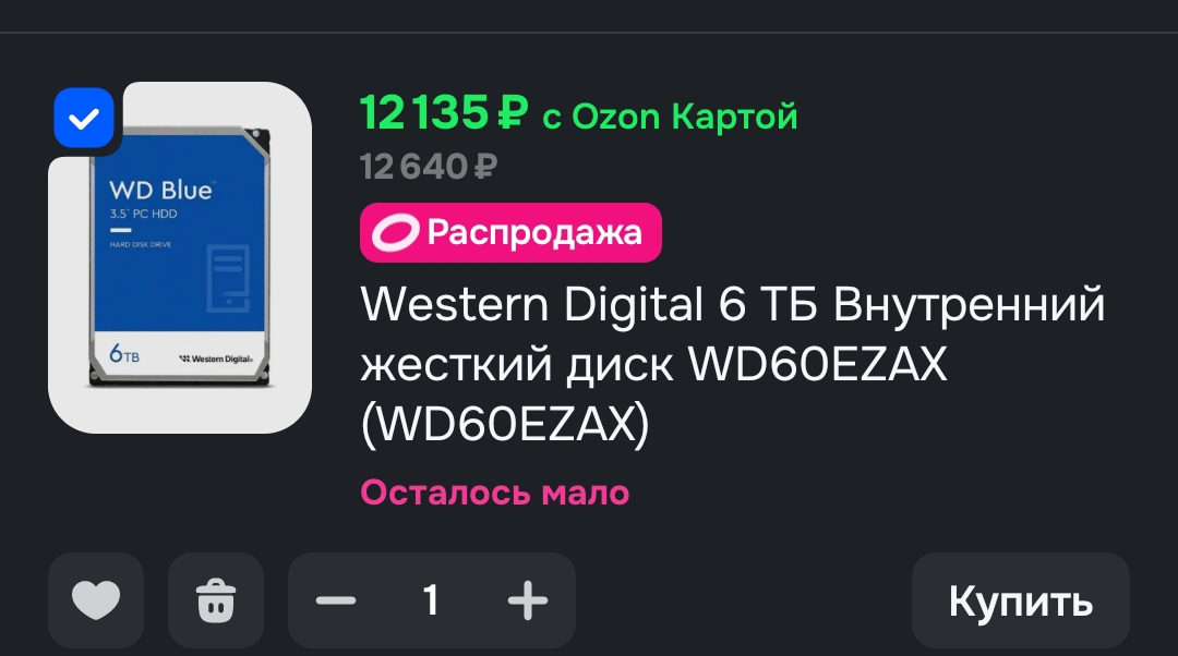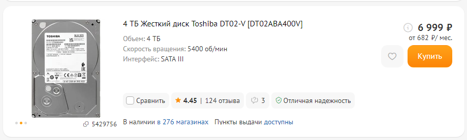 Как думаете, что лучше. Купить вот этот >>7409258 винт на 4тб за 7к в ДНС или 2 вот таких по 4тб на Озоне и сделать дубляж 4тб дубляж за 10,5к? 100% на Озоне бу