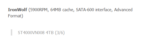 Да, вот так именно должен выглядеть нормальный CMR 4-терабайтник и кэш не должен быть больше 64мб для такого объема. Судя по описанию там 3 блина по 1,33 терабайта. Ironwolf вполне хорошие как и Exos. У Сигейта были проблемные модели например 1,5-3TB Barracuda из-за чего у него проблемы с репутацией даже на википедии есть статья про этy модель https://en.wikipedia.org/wiki/ST3000DM001, но в отличии от WD хотя бы пока что не наебывали подкладывая черепицу под видом CMR, NAS. WD конечно совсем зашкварились.