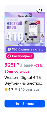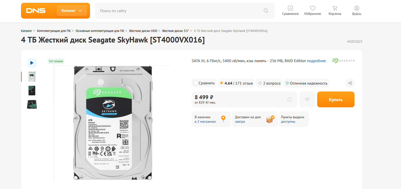 А так — харды для систем видеонаблюдений вполне себе топчик, т.к. в них используется простая запись (во всяких WD Blue она черепичная), но они не такие дорогие как серверные. Только брать надо объёмом не менее четырёх гигов, т.к. меньше банально не выгодно, если считать цену гигабайта в рублях.